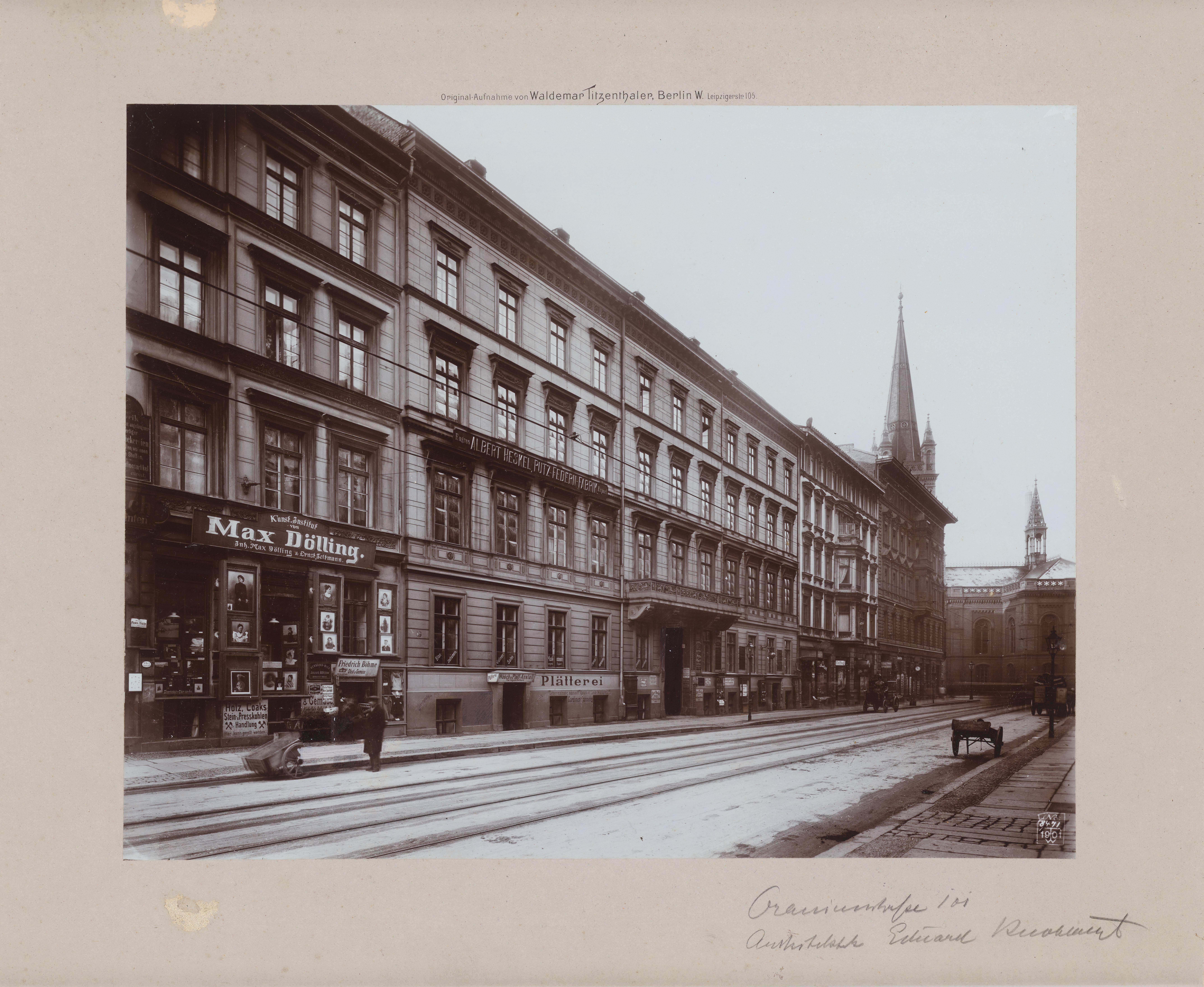 Die Aufnahmen, die ab der zweiten Hälfte des 19.Jahrhunderts Fotografen wie Waldemar Titzenthaler auf ihren Streifzügen durch Berlin angefertigt haben, prägen unser Bild von der »schwarz-weißen« Stadt vergangener Tage. 1901 entstand Titzenthalers Aufnahme des Hauses Oranienstraße 101/102, das Carl Heinrich Eduard Knoblauch 1846 für sich selbst entworfen und in der jungen Luisenstadt im heutigen Kreuzberg hatte bauen lassen. Das Mehrfamilienhaus war in seiner Fassadengestaltung ein prototypischer Entwurf jener unzähligen Mietshäuser, die im späten 19. Jahrhundert dem urbanen Wohnen Berlins sein Gesicht gaben. Allerdings löste hier die Gestaltung der Wohnungen den von der Fassade formulierten Repräsentationsanspruch noch ein: Salons, Wohnräume und Dienstbotenflügel entfalteten eine Größe, die bis dahin nahezu ausschließlich dem adeligen Wohnen vorbehalten gewesen war. Das sollte sich wenig später ändern. Äußerlich kaum zu unterscheiden, mussten sich in den Berliner Mietskasernen der Kaiserzeit ungleich mehr Menschen unter widrigen hygienischen Verhältnissen auf dafür kaum geeigneten Grundrissen drängen. Die Fassaden dieser Spekulationsobjekte waren nur noch schöner Schein, der das soziale Elend der Großstadt mehr schlecht als recht verbergen konnte.