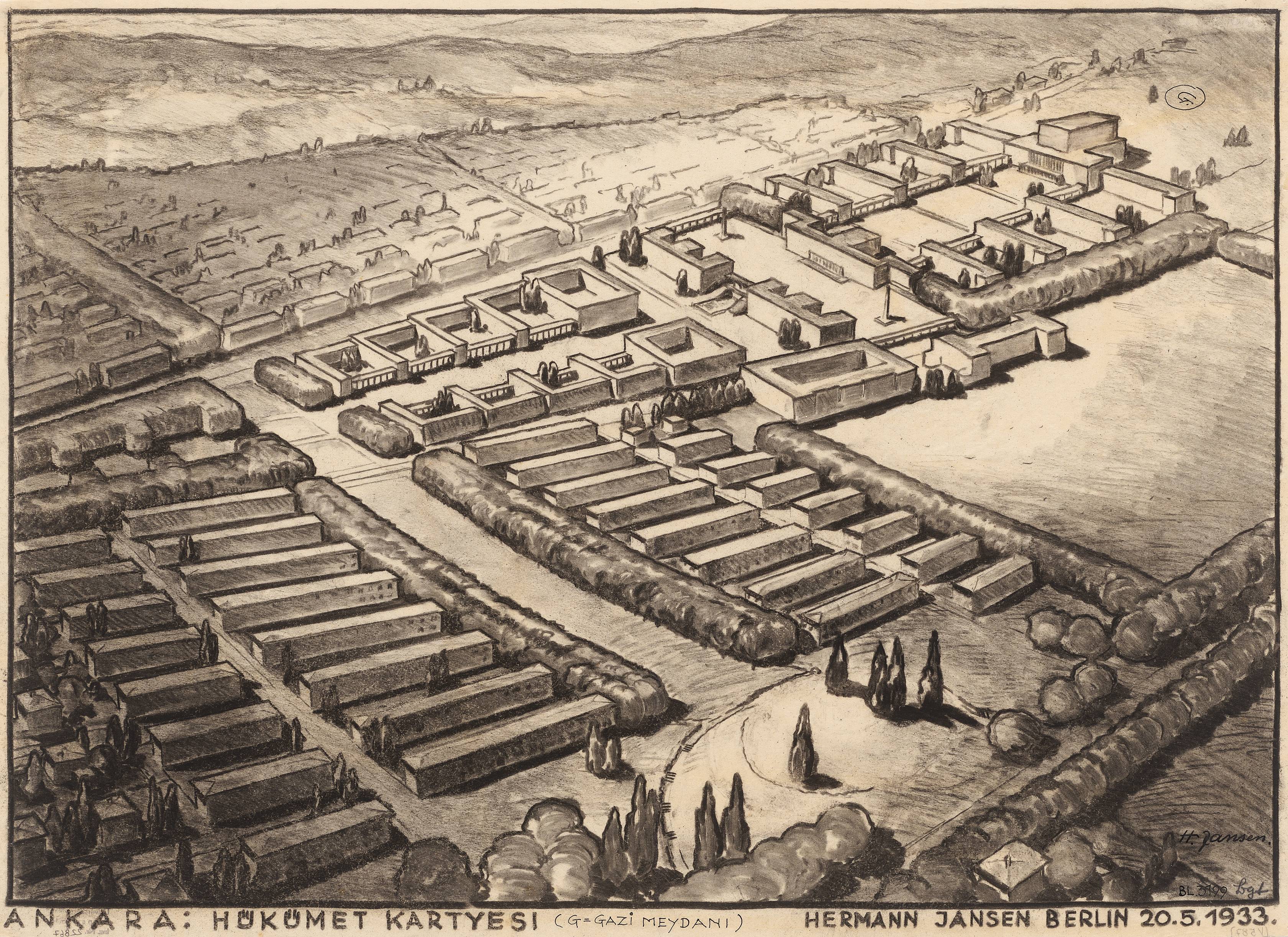 Mit dem Ziel, Ankara als neue Hauptstadt der drei Jahre zuvor gegründeten Türkischen Republik architektonisch und infrastrukturell zu entwickeln, entwarfen der etablierte deutsche Städtebauer Hermann Jansen und weitere europäische Kollegen ab 1927 Generalbebauungspläne für die Regierung um Mustafa Kemal Paşa (1891–1938). Obwohl Jansen als Sieger aus dem Wettbewerb hervorging, konnte er sein Konzept einer Kombination von urbanen Zentren mit Gartenstadtelementen nur sehr bedingt realisieren. Seine Absicht, die politischen Ideen des Kemalismus konkret architektonisch-künstlerisch im Stadtraum umzusetzen, scheiterte weitgehend an organisatorischen Unwägbarkeiten und gegenläufigen Behördeninteressen.