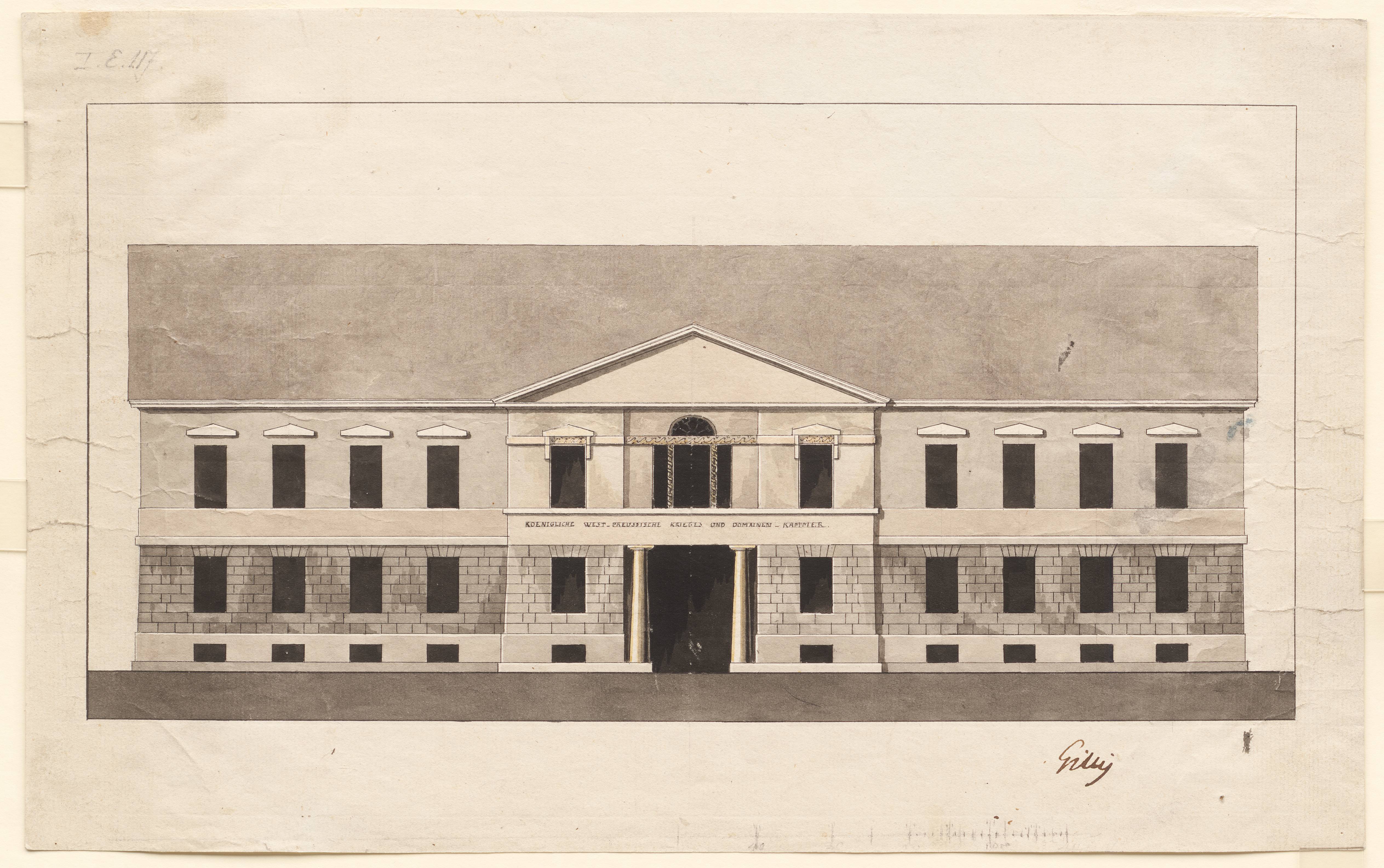 Im Rahmen seiner Tätigkeit für das Oberbaudepartement entstand 1798 der Entwurf eines Erweiterungsbaus für das Kammerkonferenzhaus im westpreußischen Marienwerder. Als Dreiflügelanlage bildete dieser in Verbindung mit dem benachbarten, 1762 vollendeten Fermor-Palais einen nahezu geschlossenen quadratischen Baukomplex. Die beiden Geschosse sind durch eine Erdgeschossrustika deutlich unterschieden. Den Mittelrisalit der ansonsten kaum gegliederten elfachsigen Hauptfassade akzentuiert Gilly durch eine Portalnische mit eingestellten Säulen, die oben durch ein breites Gesims abschließt. Die darüberliegende zurückgesetzte Wandzone betont ein dreiteiliges, von Renaissancevorbildern inspiriertes Fenstermotiv unter einem dekorlosen Giebelfeld. Anstelle einer über dem Eingang vorgesehenen Inschrift erhielt das Gesims bei der Bauausführung 1801 einen figürlichen Relieffries.