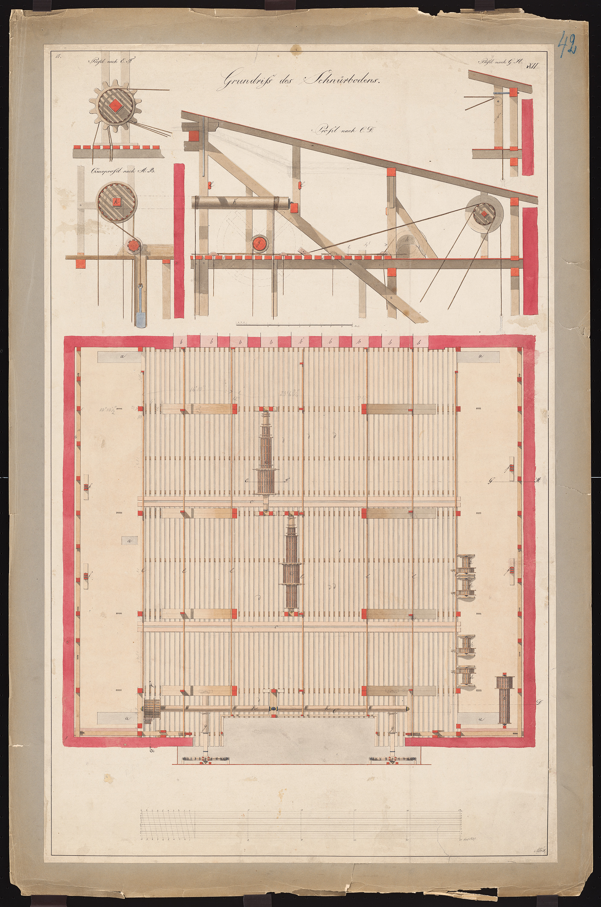 Bühnenhaus: Schnürboden, Grundriss, Querschnitt