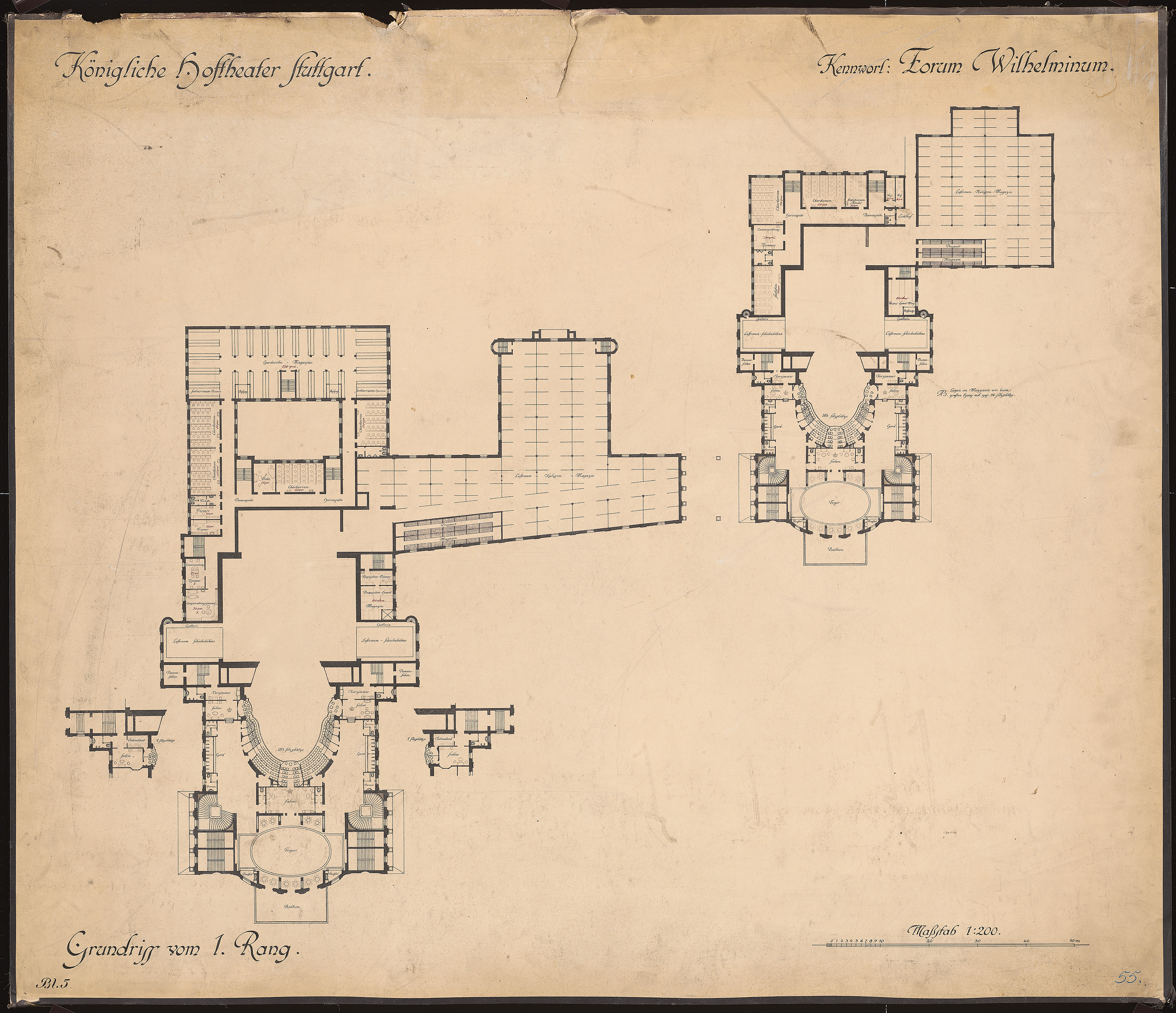 Grundriss in Ranghöhe des großen und kleinen Theaters