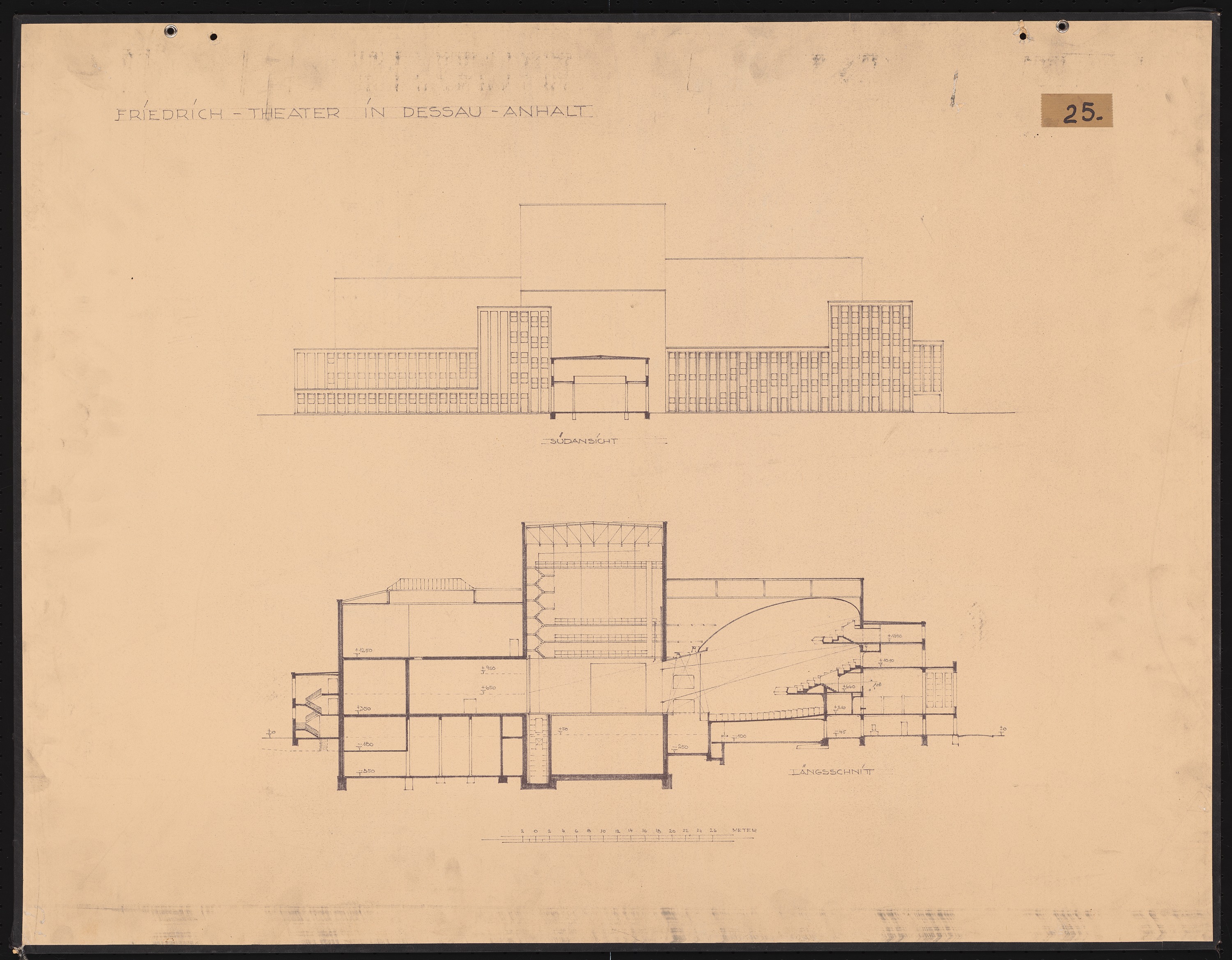 Südansicht, Längsschnitt 1:200