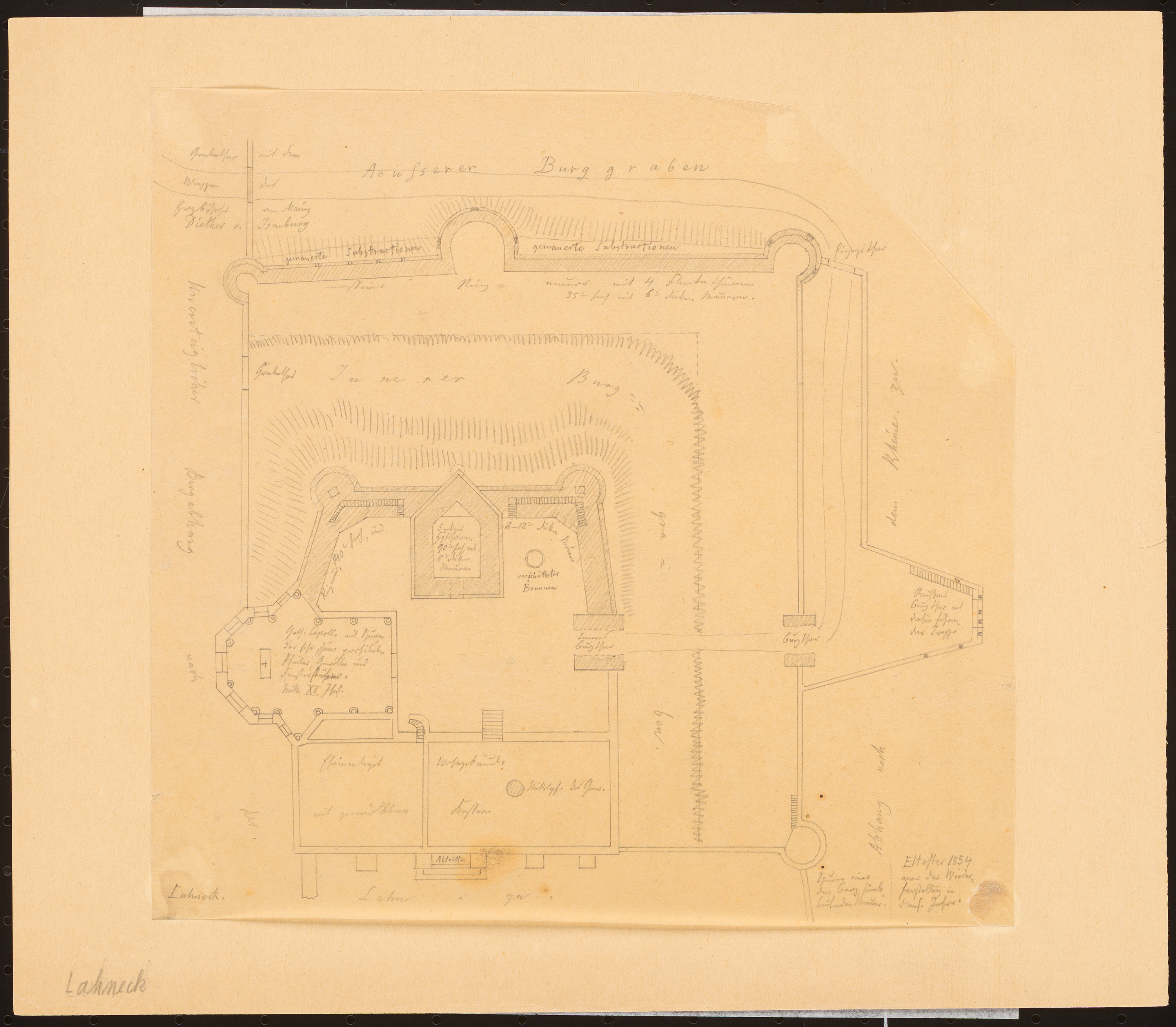Grundriss der Burg vor der Wiederherstellung in demselben Jahr