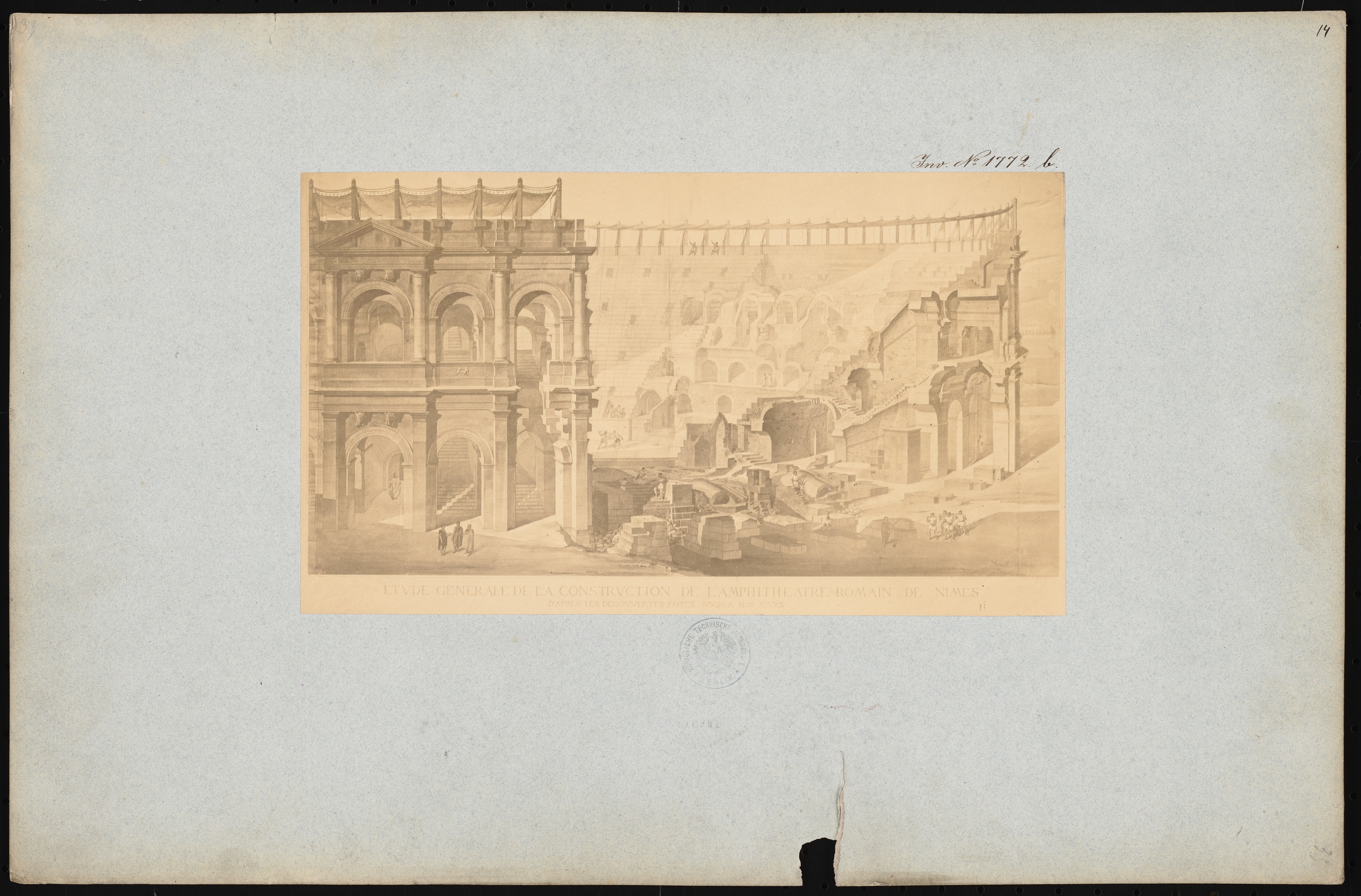 Amphitheater, Nîmes. Fotografie eines Stichs aus dem 18. JH.