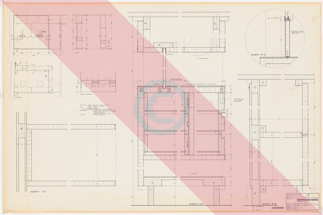 Vorderhaus: Detail Eingangshalle Kassen 1:20, 1:1