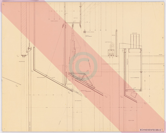 Bühnentechnik: Schnitt Portalanlage (Ausstellungstafel der »Prague Quadrennial of the Theatre Design and Architecture« 1967)