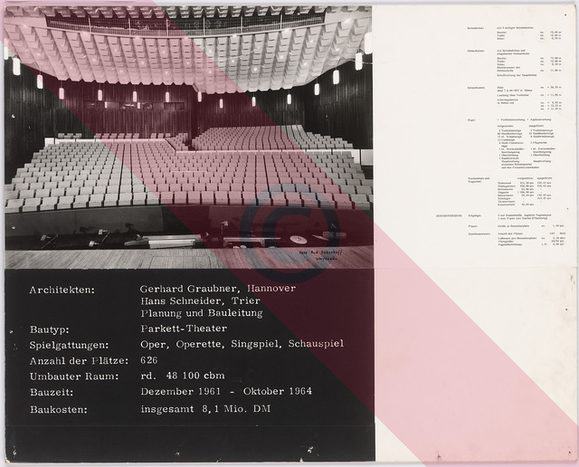 Zuschauerraum, technische Daten (Ausstellungstafel der »Prague Quadrennial of the Theatre Design and Architecture« 1967)
