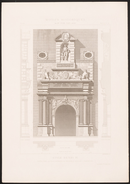 Ansicht Detail, Fassadenschnitte vertikal (aus: Motifs historiques d´architecture et de sculpture d´ornement, hrsg.v. César Daly, Bd.1, 1870)