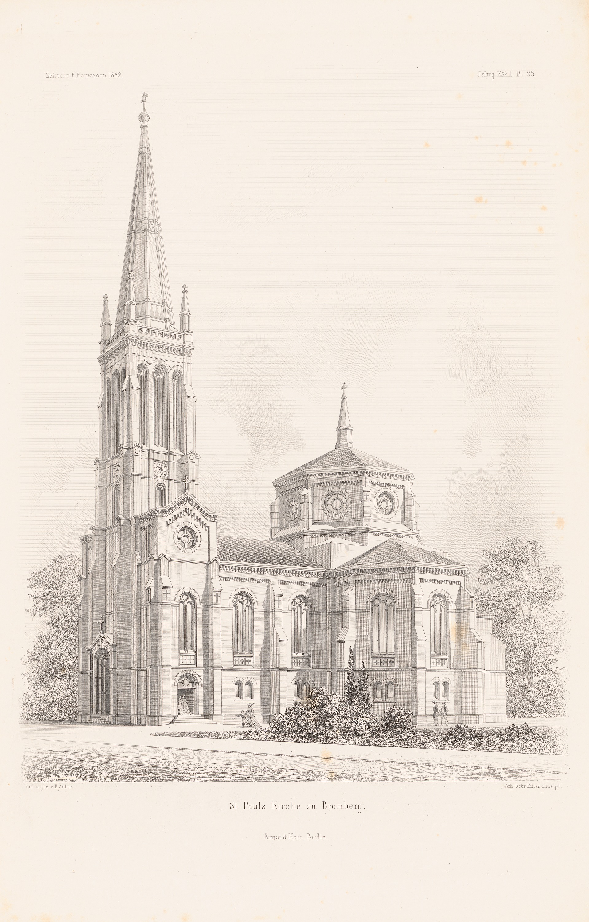 Perspektivische Ansicht (aus: Atlas zur Zeitschrift für Bauwesen, hrsg. v. G. Erbkam, Jg. 32, 1882)