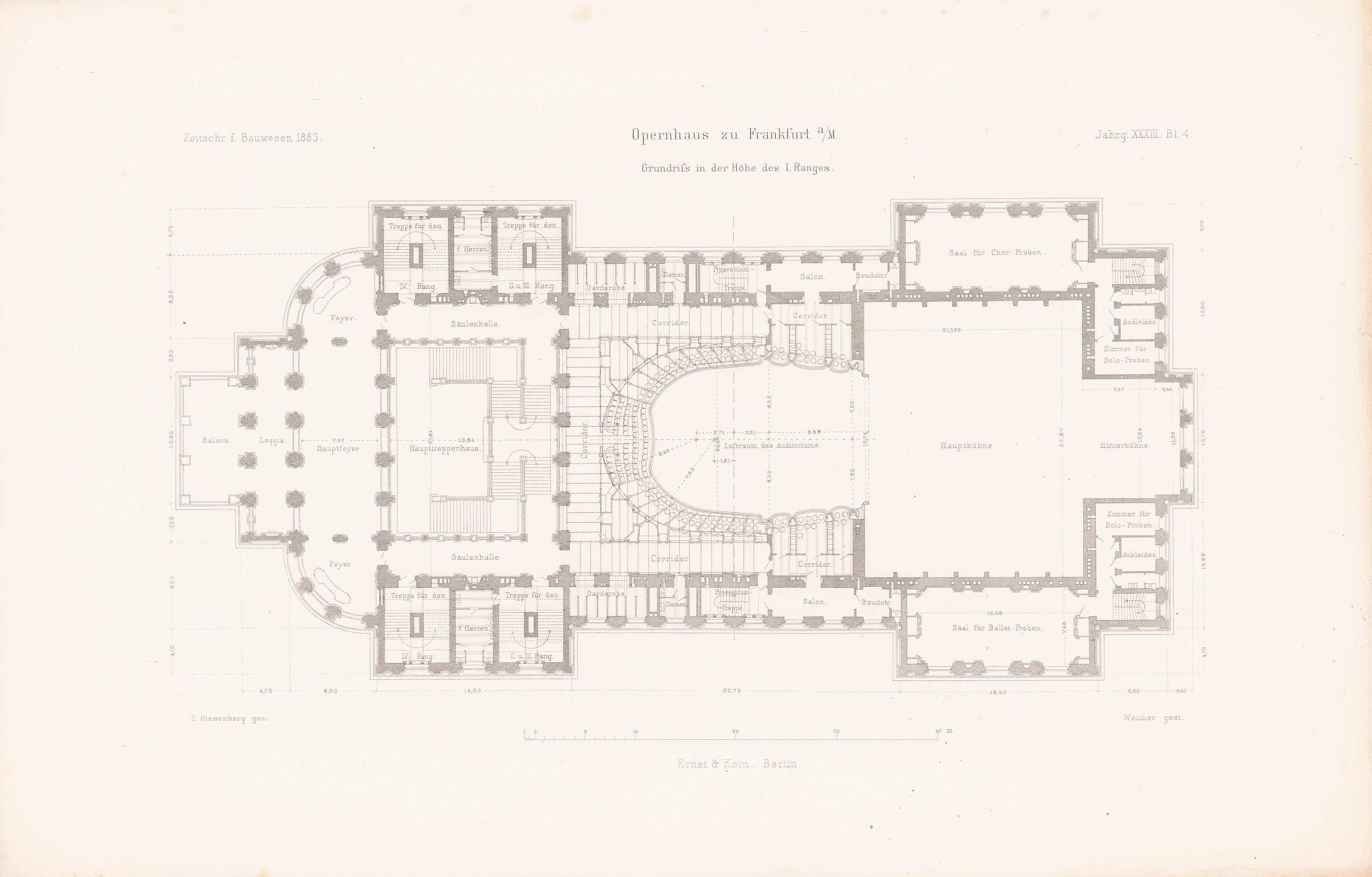 Grundriss 1.Rang (aus: Atlas zur Zeitschrift für Bauwesen, hrsg. v. L.v.Tiedemann, Jg. 33, 1883)