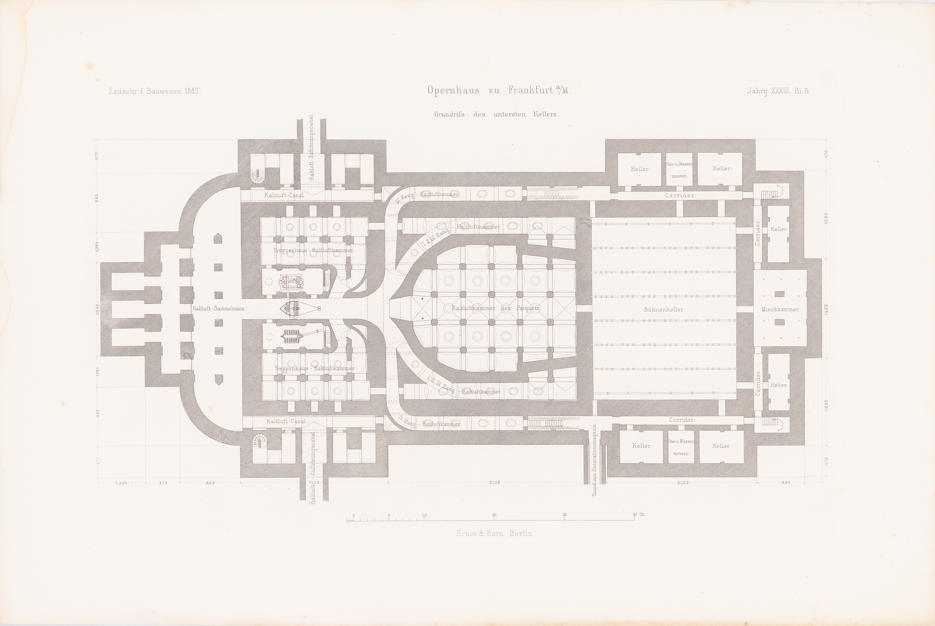 Grundriss Keller (aus: Atlas zur Zeitschrift für Bauwesen, hrsg. v. L.v.Tiedemann, Jg. 33, 1883)