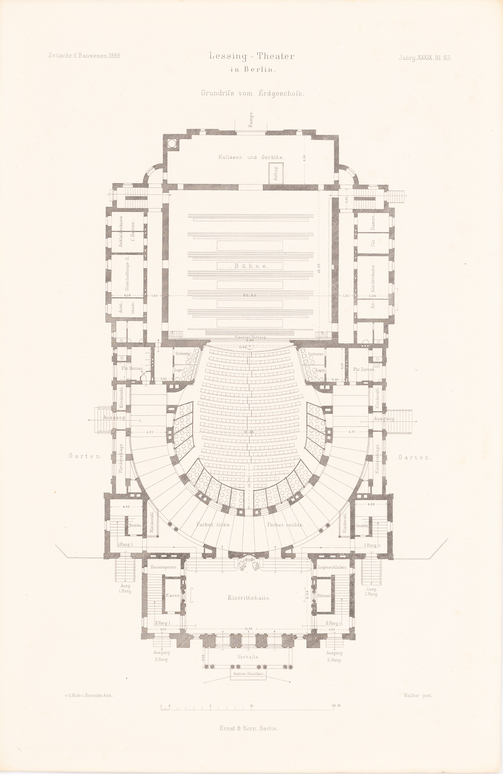 Grundriss EG (aus: Atlas zur Zeitschrift für Bauwesen, hrsg. v. Ministerium der öffentlichen Arbeiten, Jg. 39, 1889)