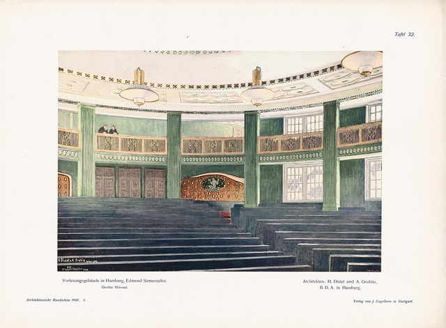 Perspektivische Innenansicht Großer Hörsaal (aus: Architekt. Rundschau, hrsg.v. Eisenlohr & Weigle, 1910)