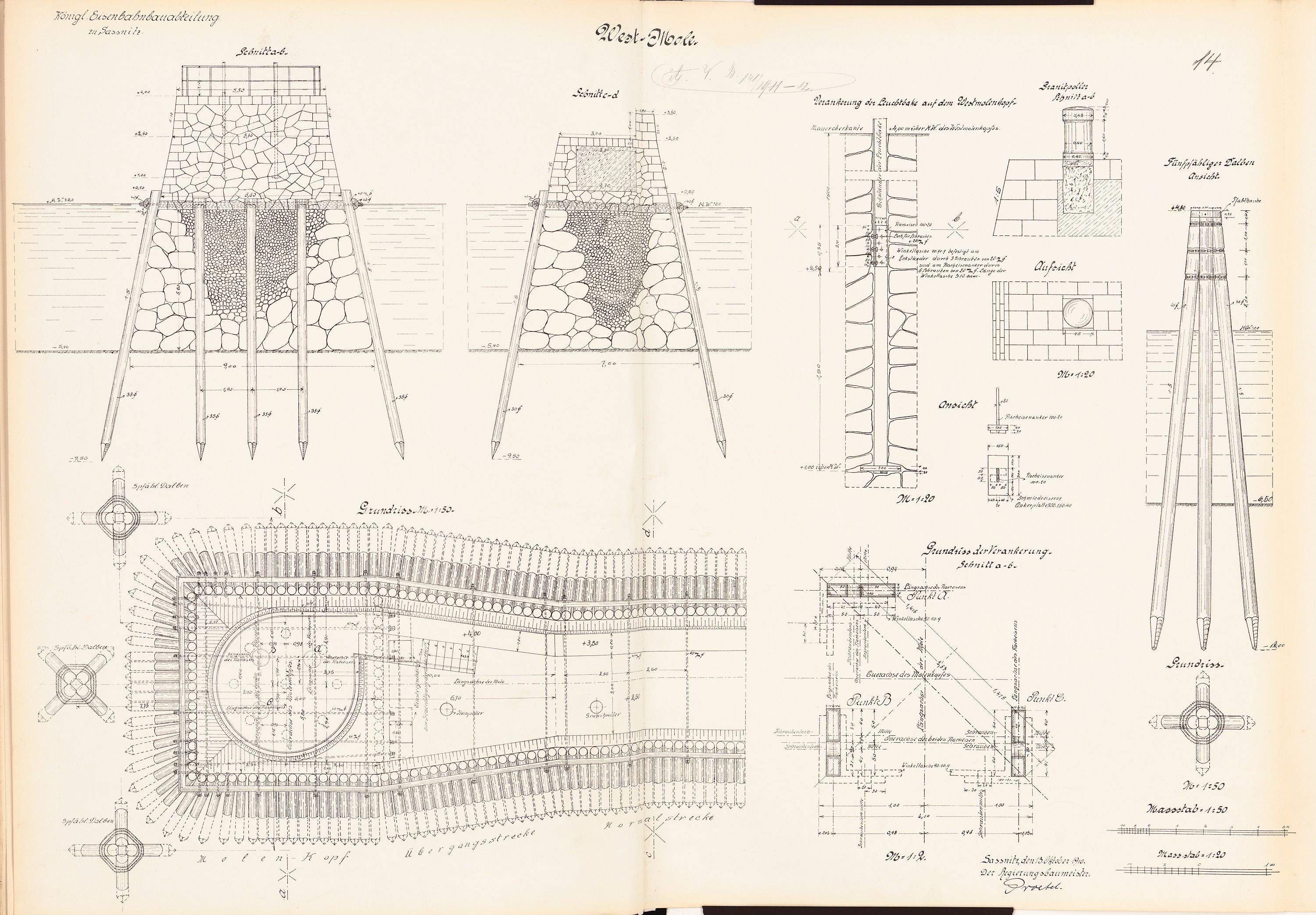 Westmole: Ansicht, Grundrisse, Schnitte 1:50, 1:20, 1:2