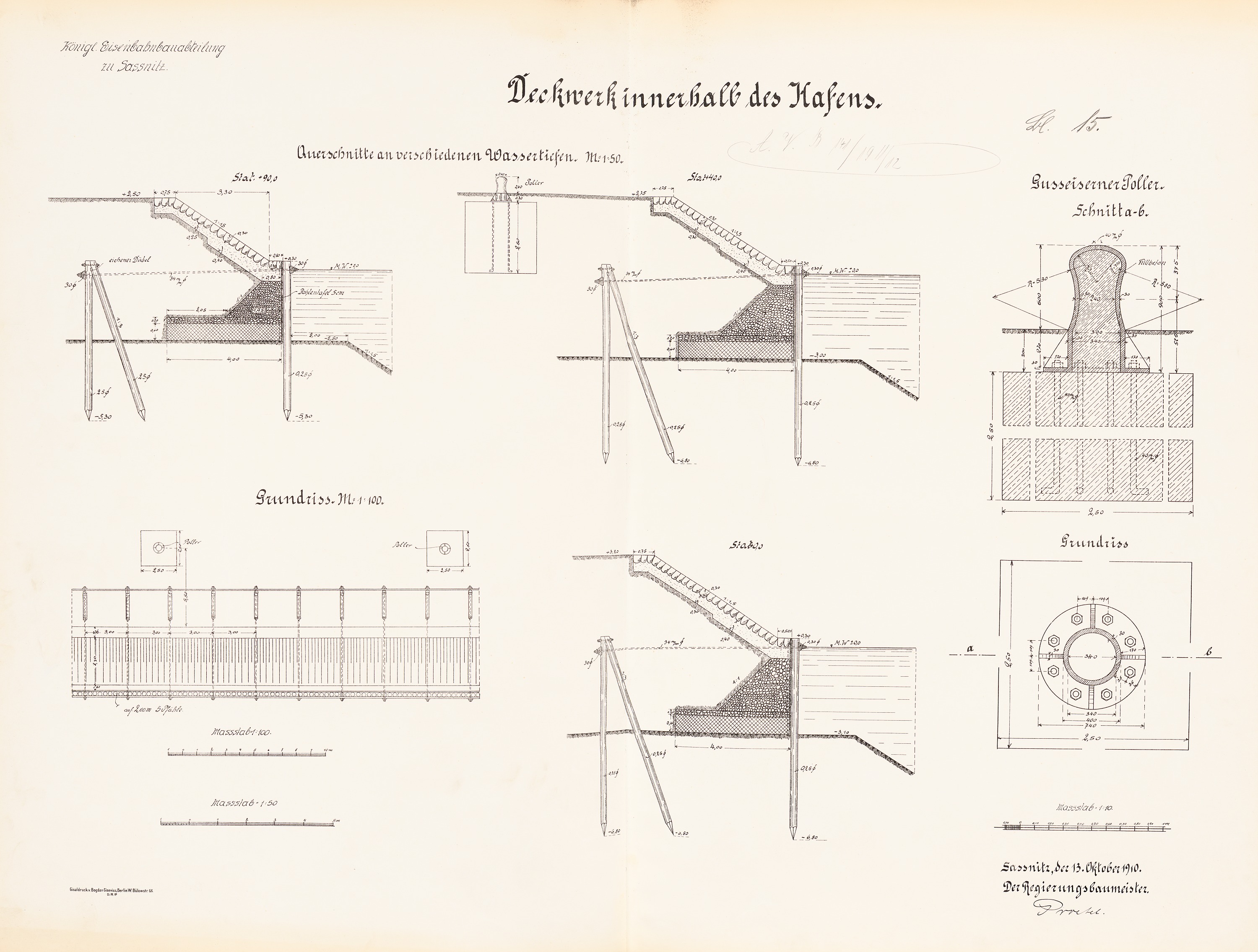 Deckwerk innerhalb des Hafens: Grundrisse, Schnitte 1:100, 1:50, 1:10