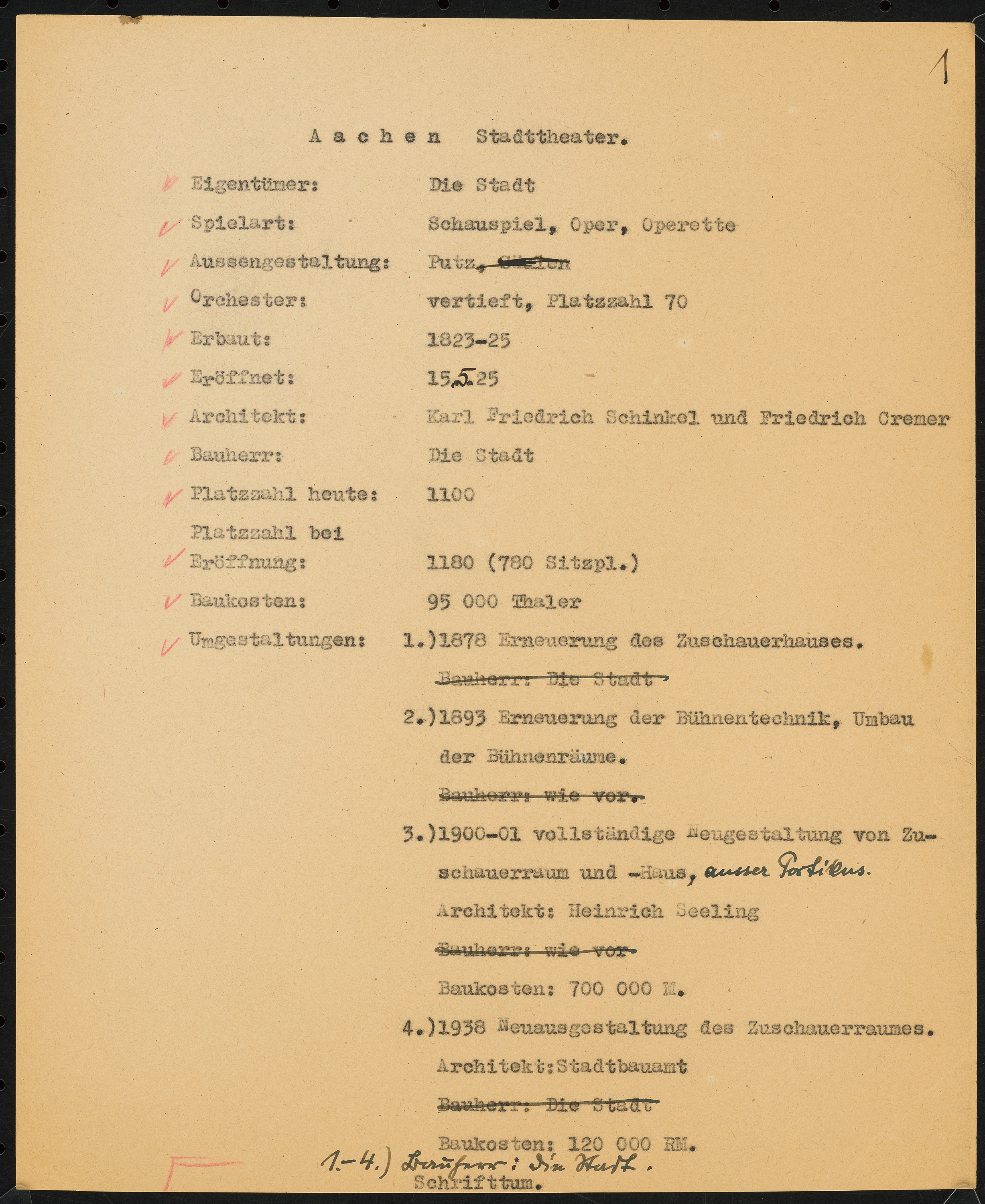 Text: Schreibmaschine (Durchschlag), schwarze Tusche, roter Buntstift auf Papier