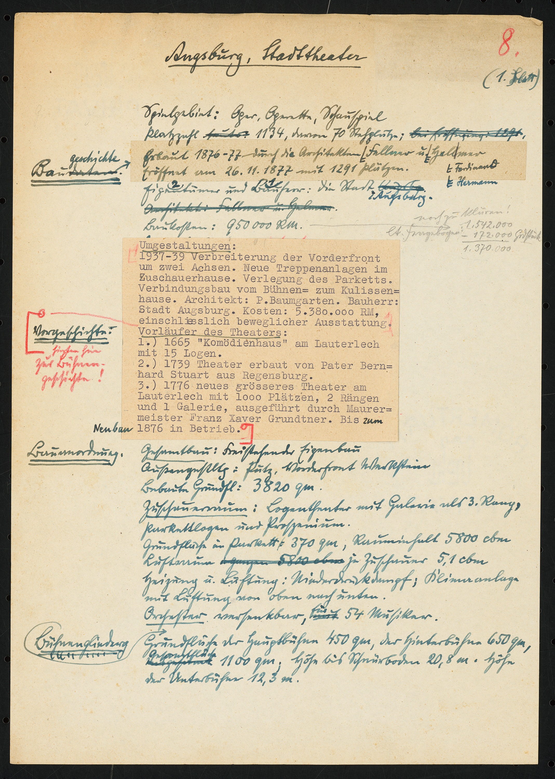 Schriftstück zum Fragebogen für das Handbuch »Das Deutsche Theater«