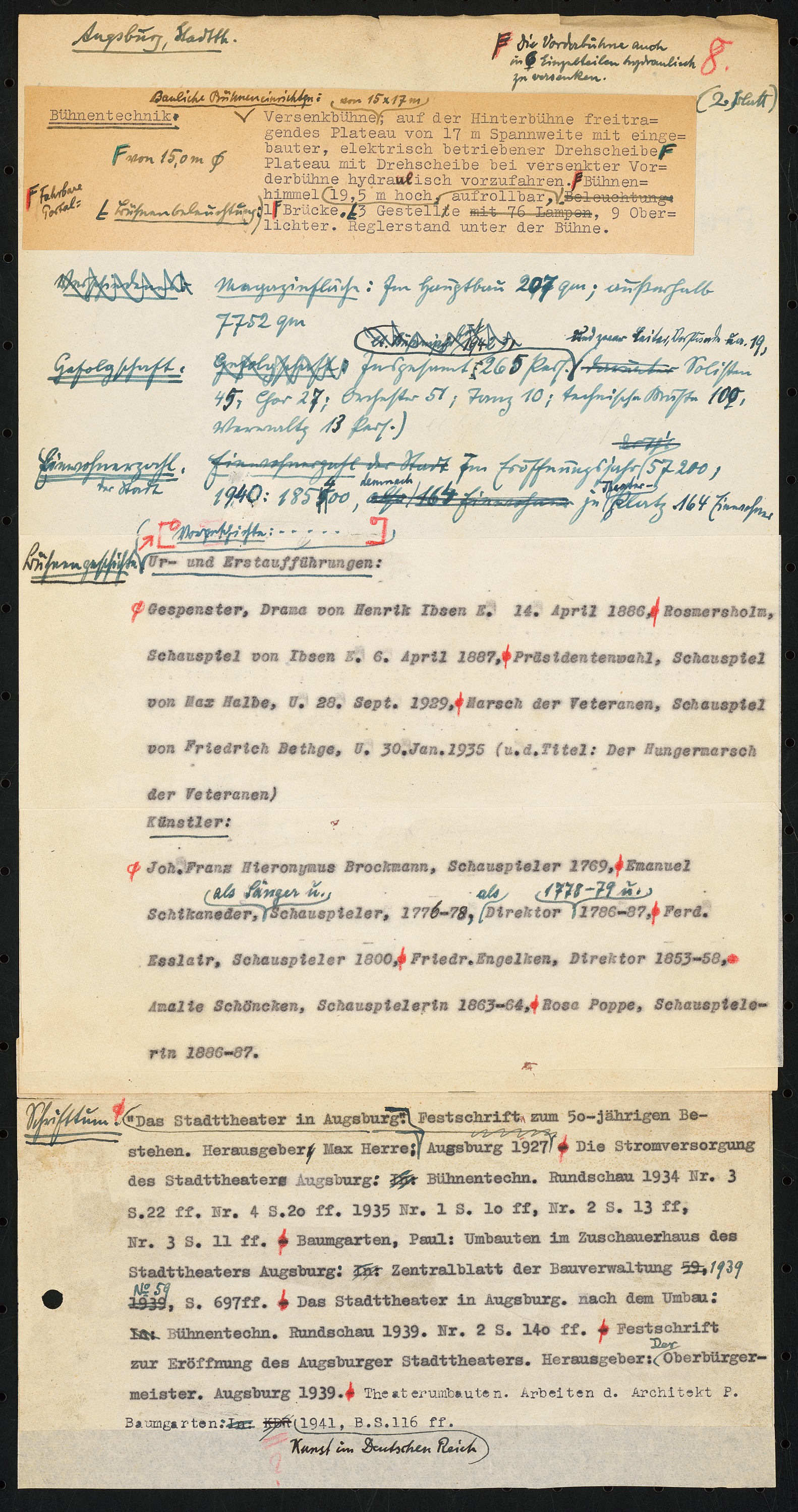 Schriftstück zum Fragebogen für das Handbuch »Das Deutsche Theater«
