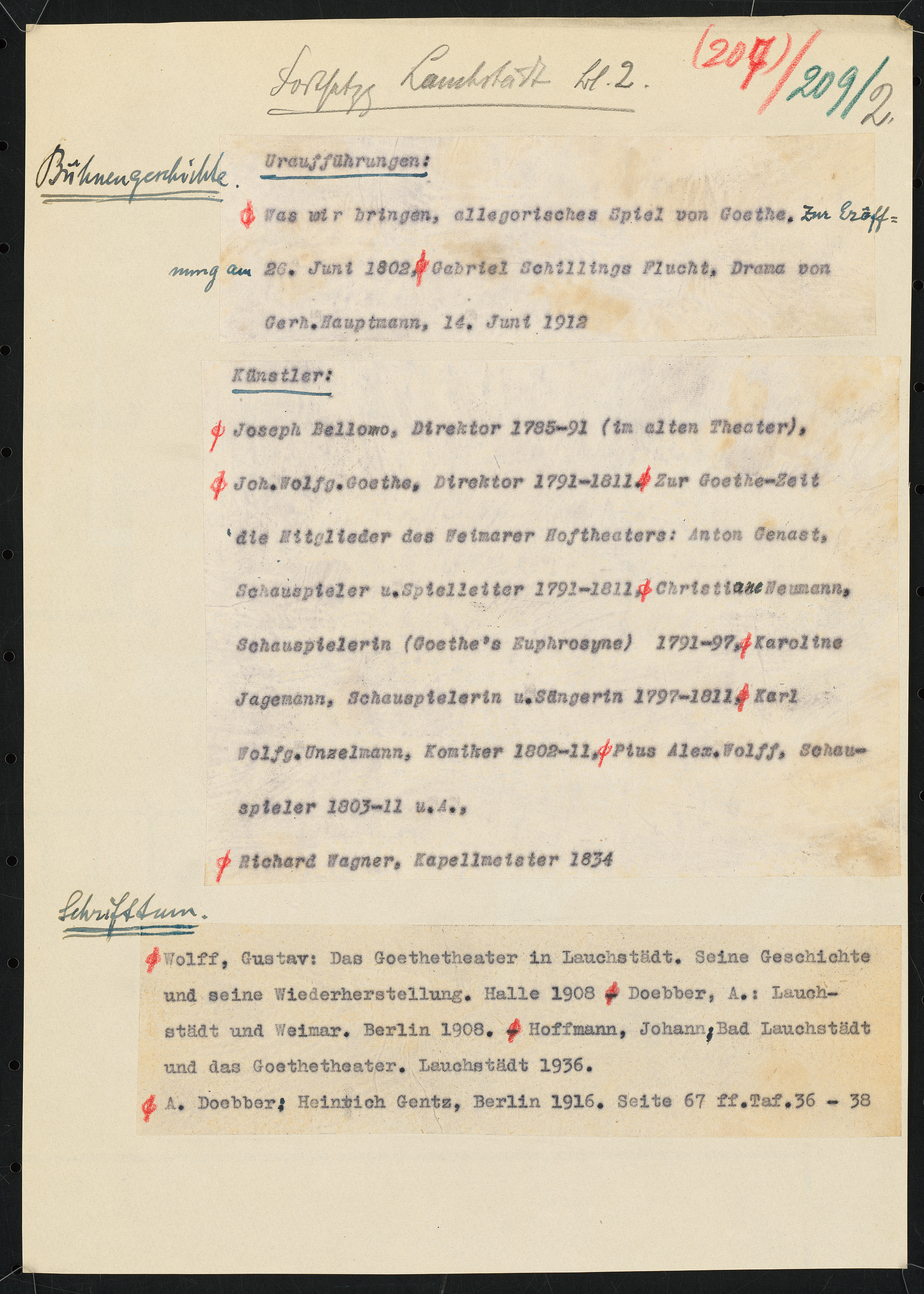 Schriftstück zum Fragebogen für das Handbuch »Das Deutsche Theater«