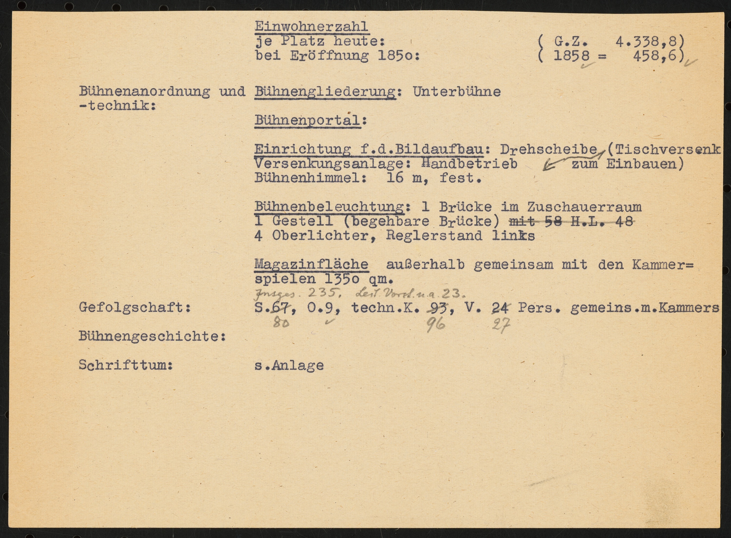 Schriftstück zum Fragebogen für das Handbuch »Das Deutsche Theater«