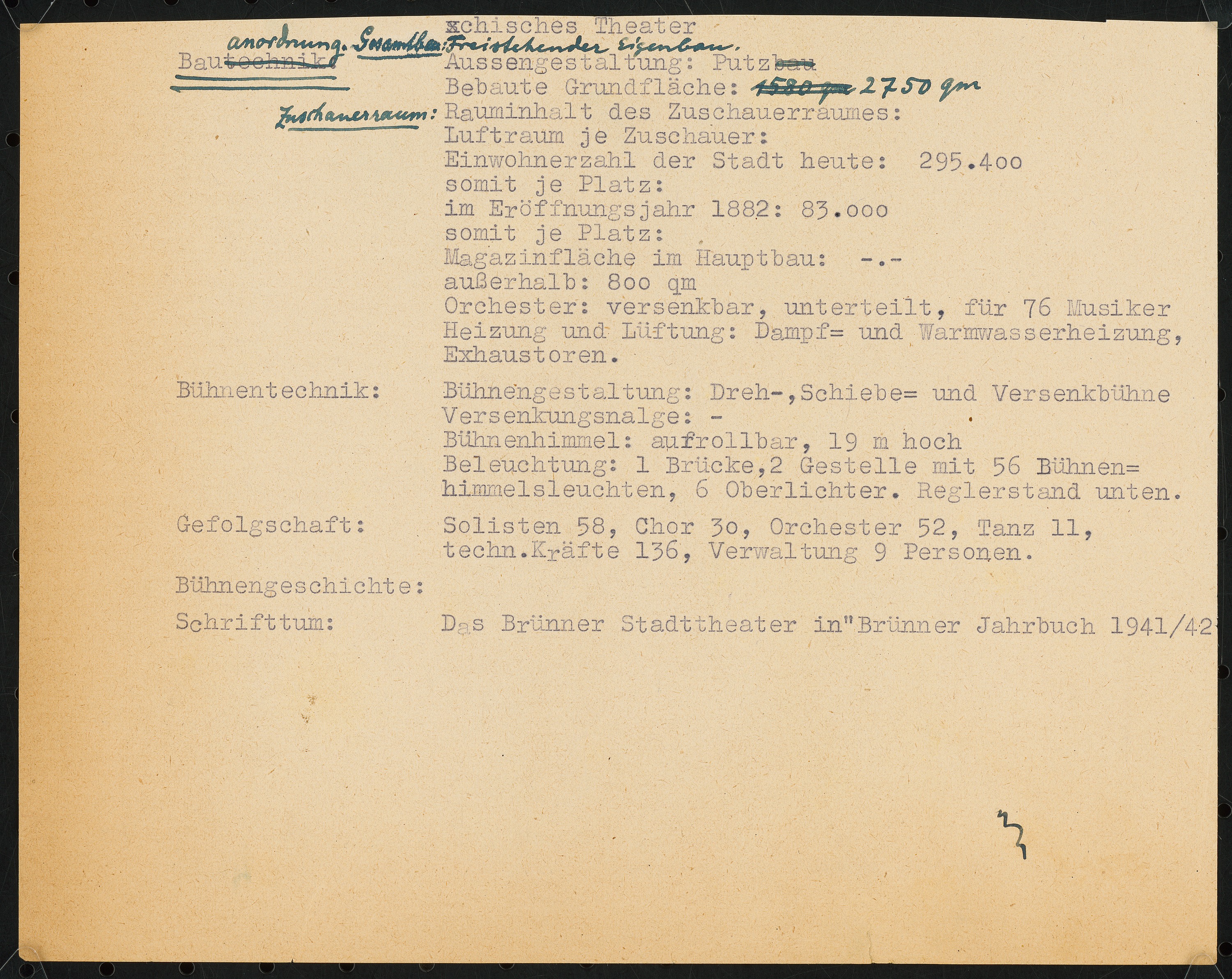 Schriftstück zum Fragebogen für das Handbuch »Das Deutsche Theater«