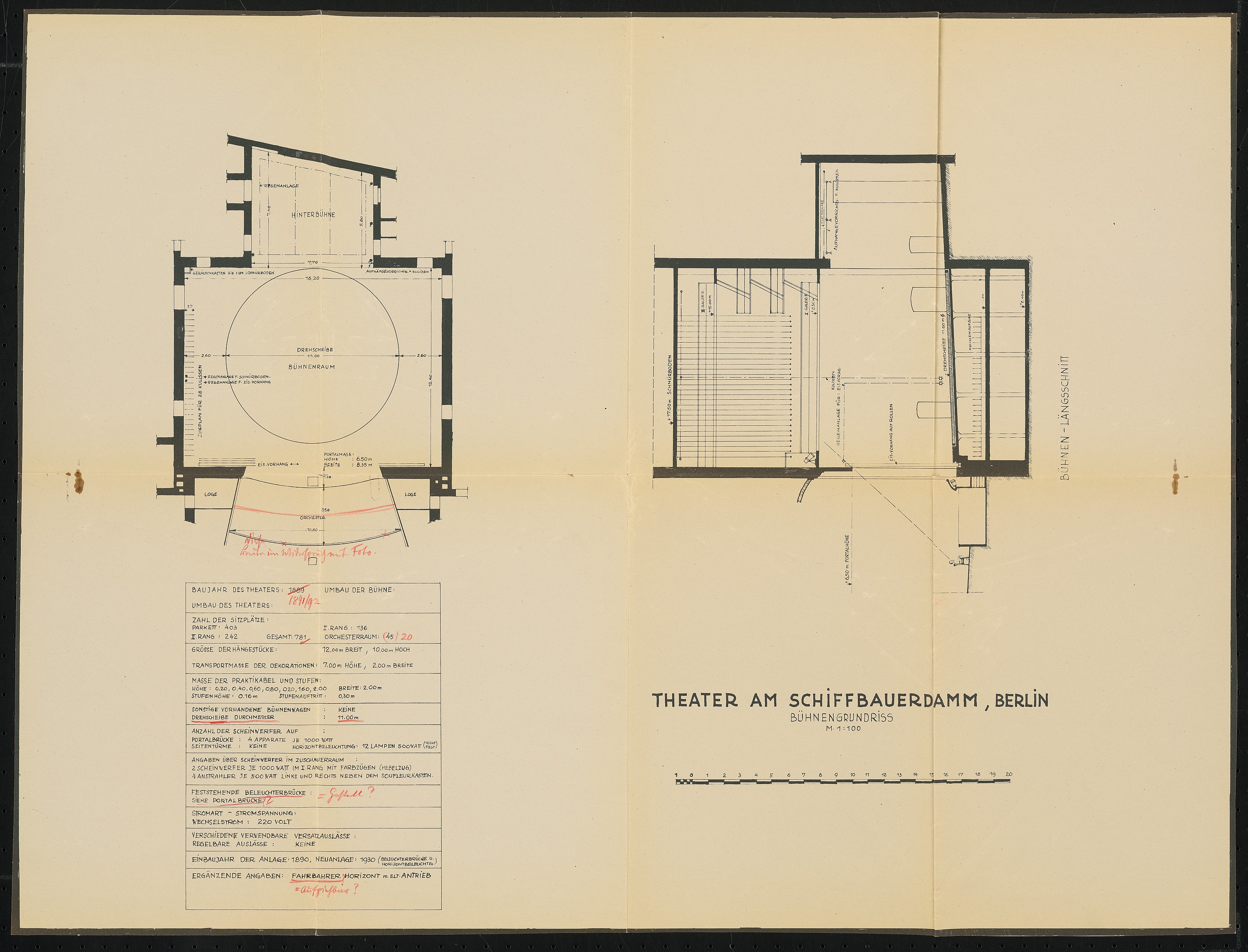 Bühnengrundriss und Bühnenlängsschnitt 1:100