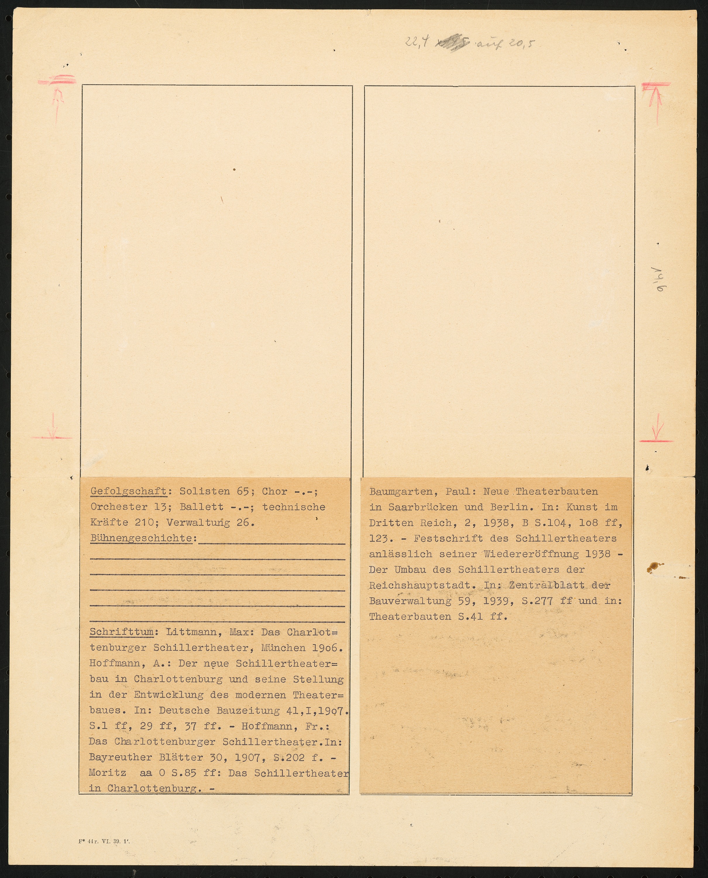 Schriftstück zum Fragebogen für das Handbuch »Das Deutsche Theater«