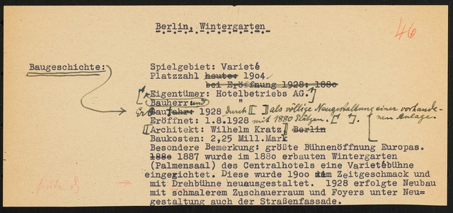 Schriftstück zum Fragebogen für das Handbuch »Das Deutsche Theater«