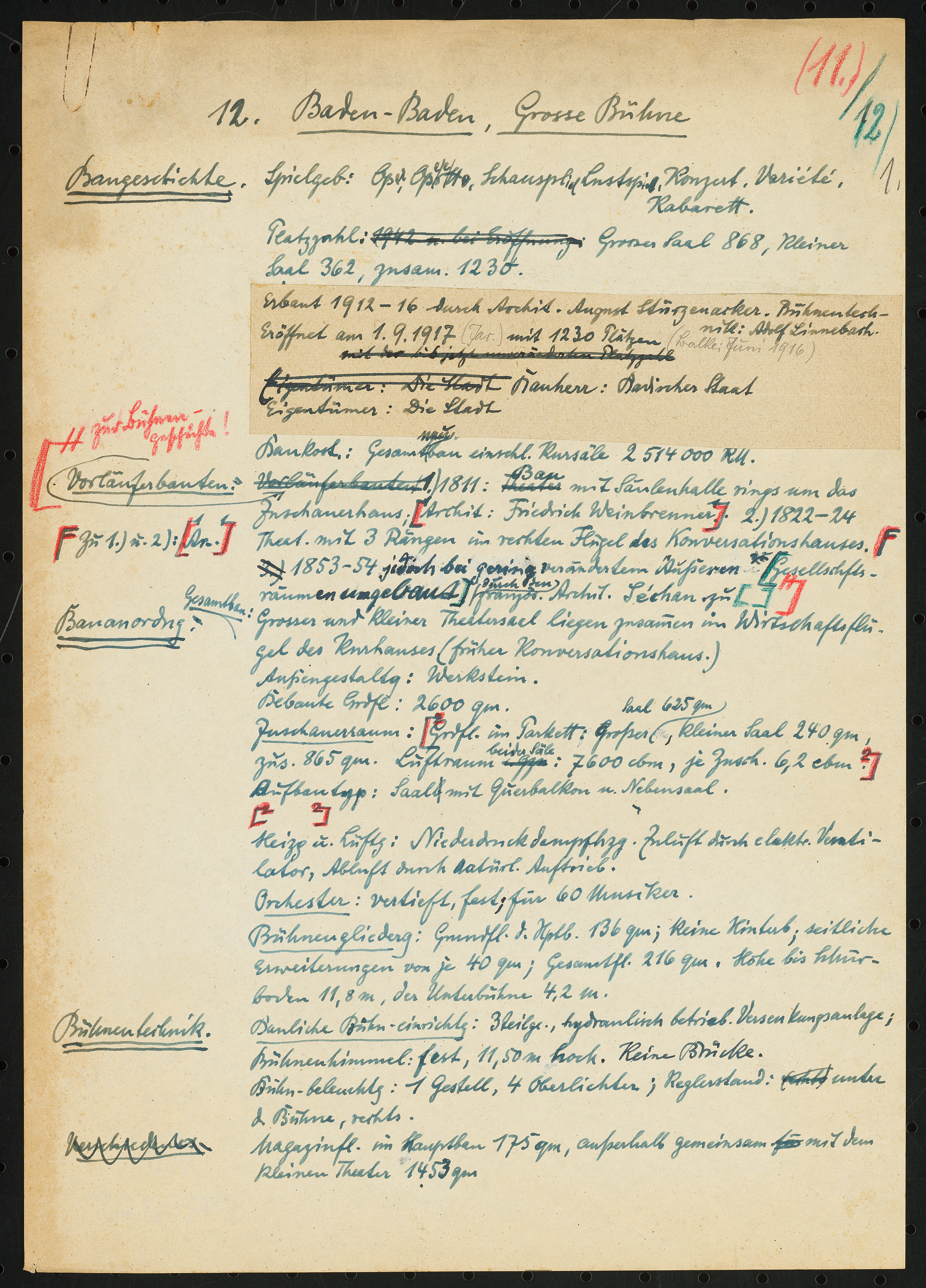 Schriftstück zum Fragebogen für das Handbuch »Das Deutsche Theater«, zwei Seiten