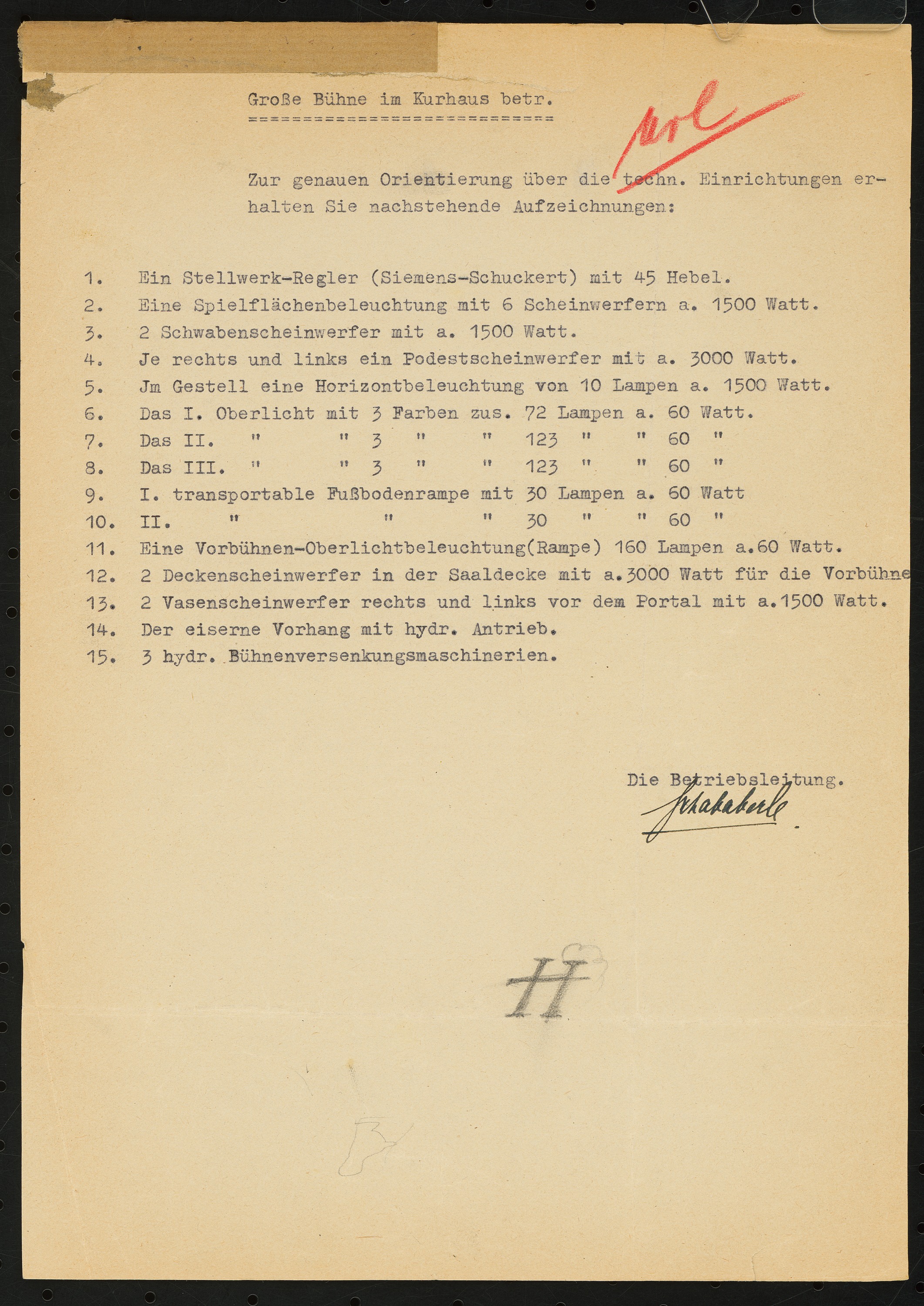 Schriftstück zum Fragebogen für das Handbuch »Das Deutsche Theater«