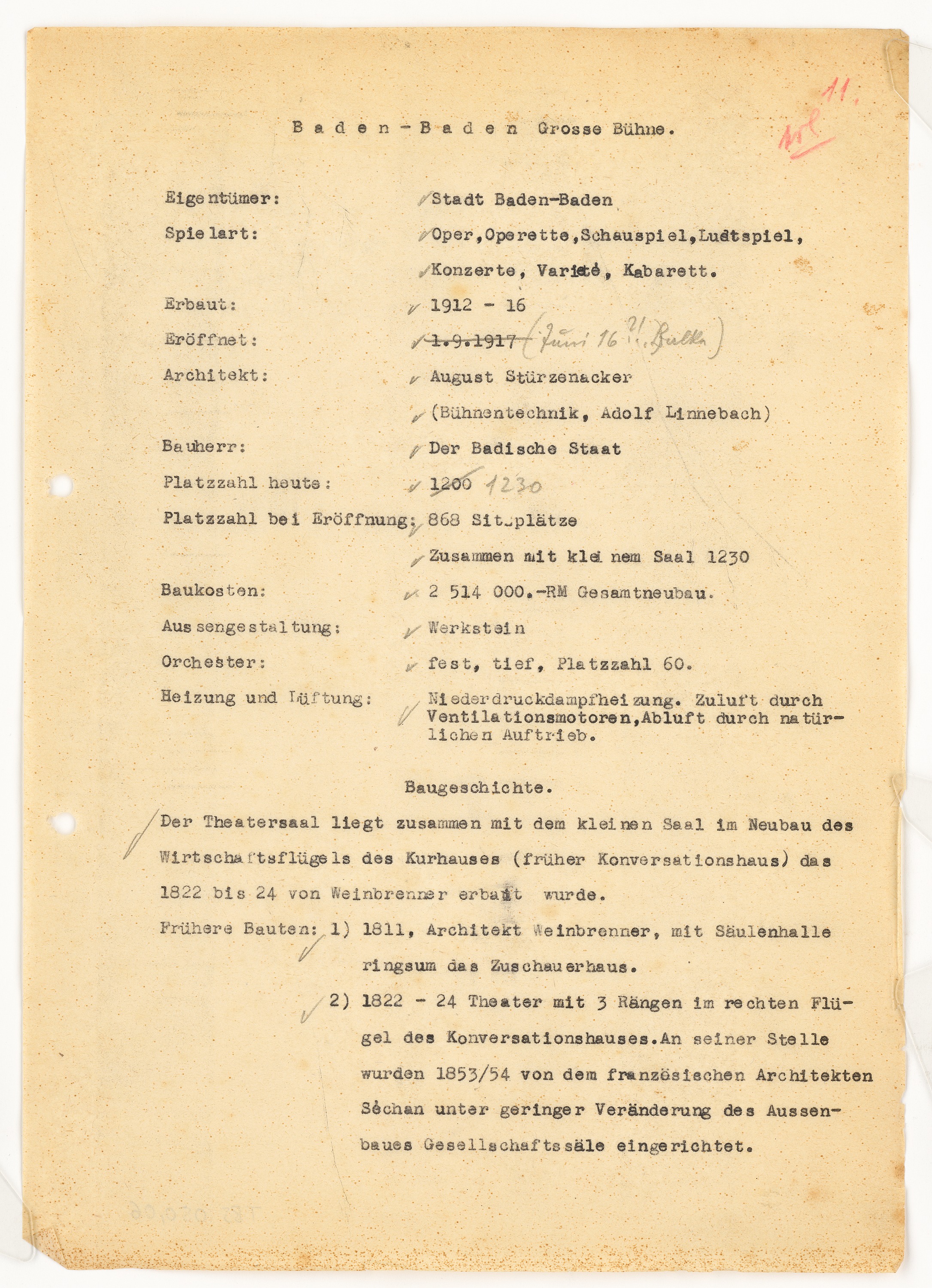 Schriftstück zum Fragebogen für das Handbuch »Das Deutsche Theater«