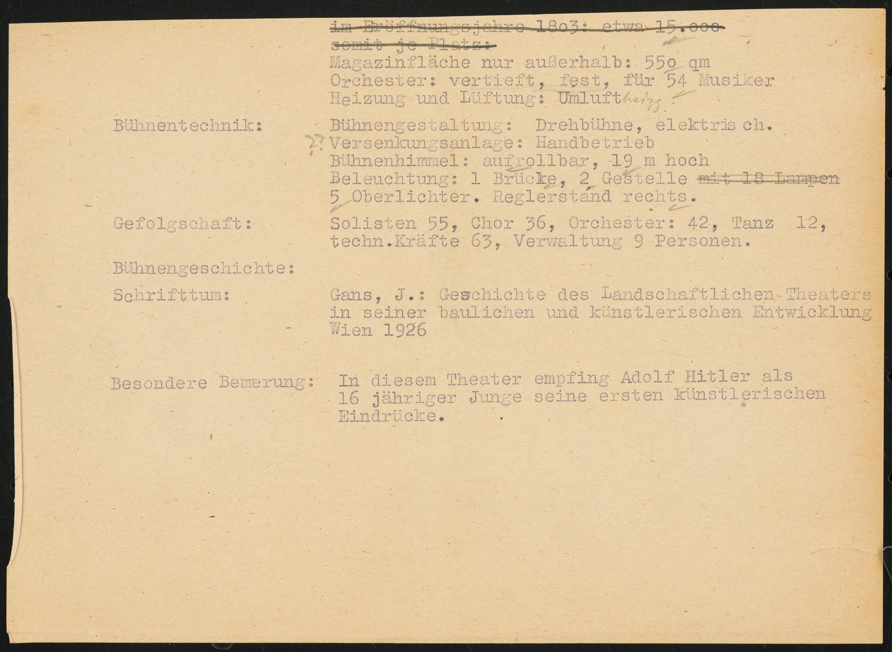 Schriftstück zum Fragebogen für das Handbuch »Das Deutsche Theater«