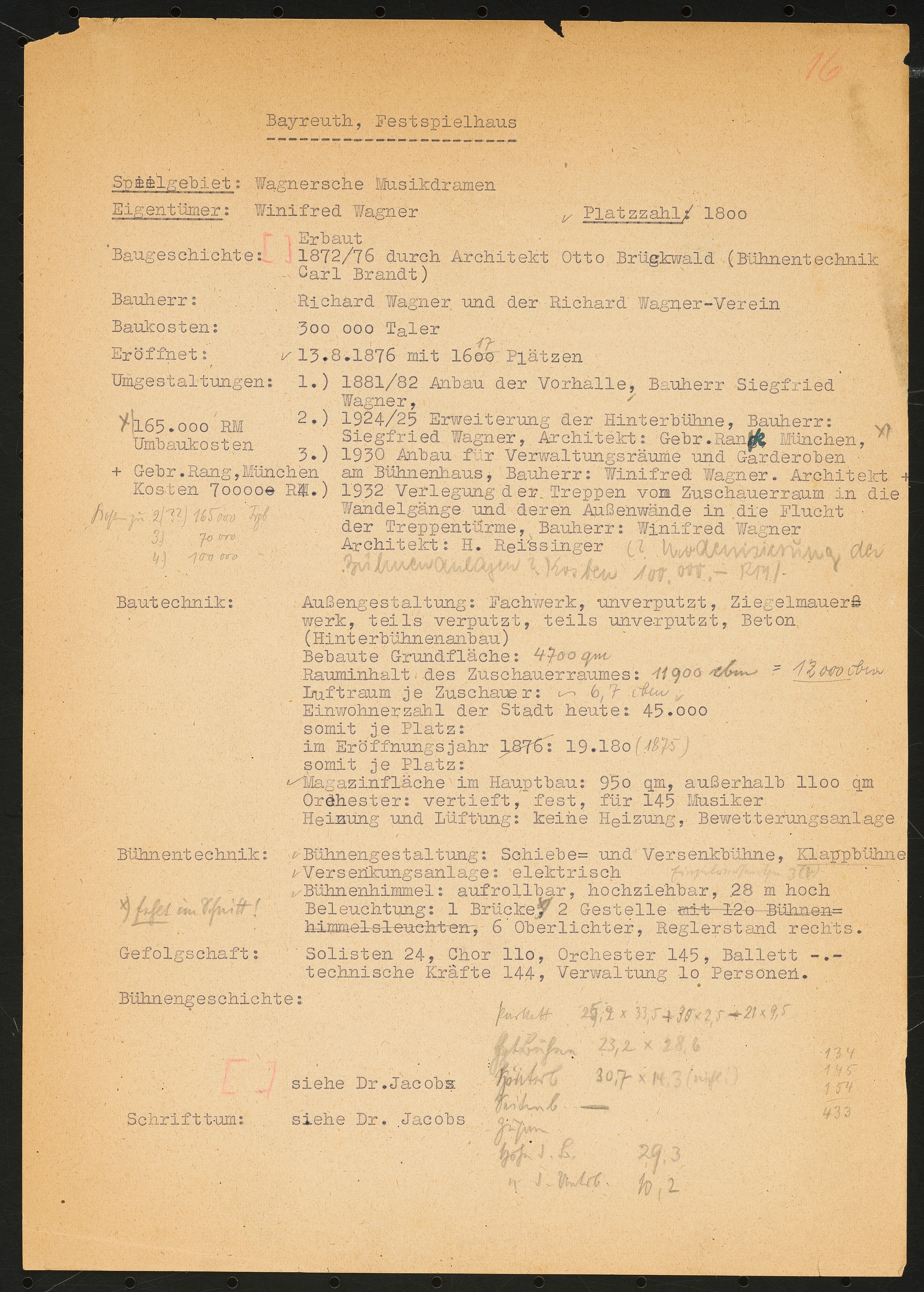 Schriftstück zum Fragebogen für das Handbuch »Das Deutsche Theater«