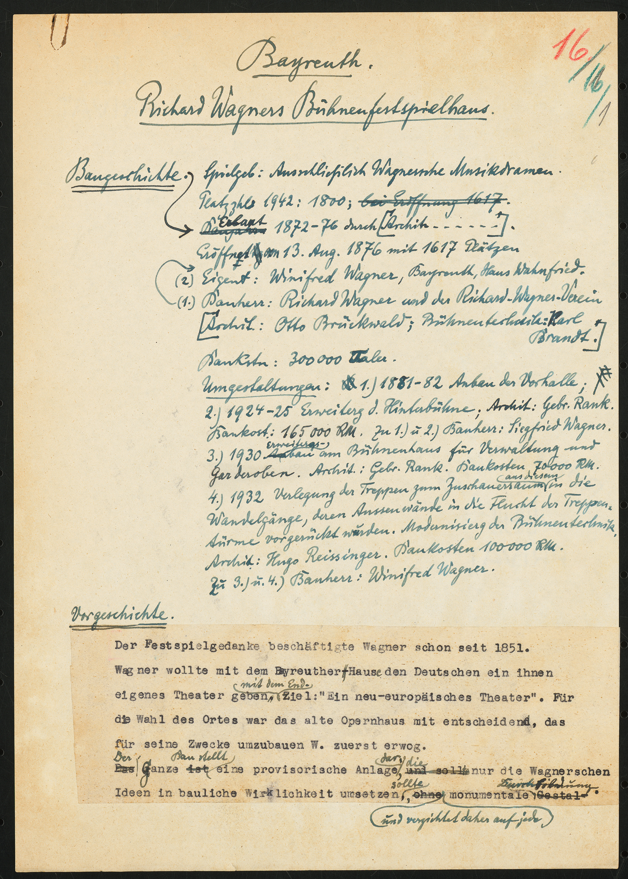 Schriftstück zum Fragebogen für das Handbuch »Das Deutsche Theater«, vierseitiges Dokument
