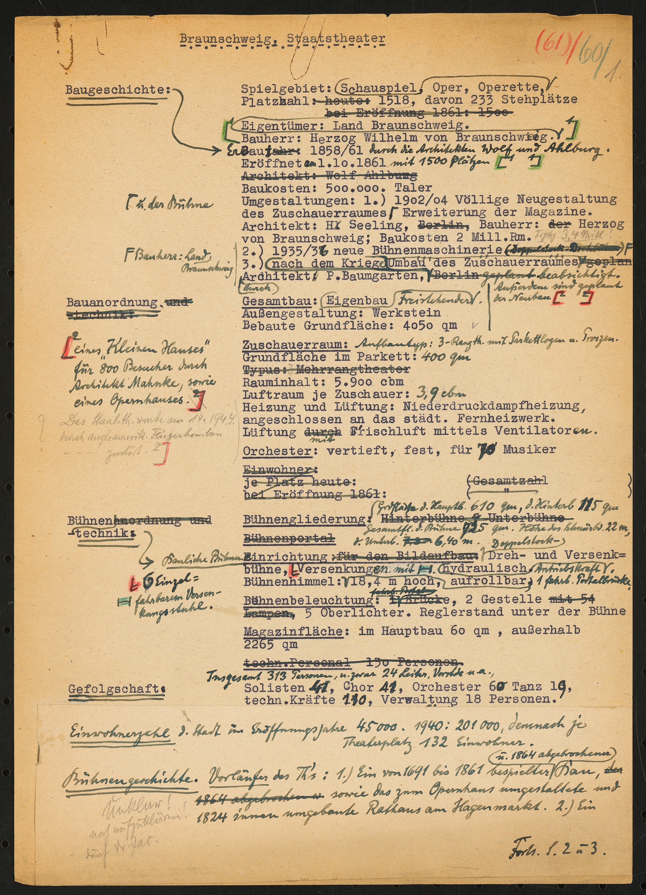 Schriftstück zum Fragebogen für das Handbuch »Das Deutsche Theater«, eine Seite