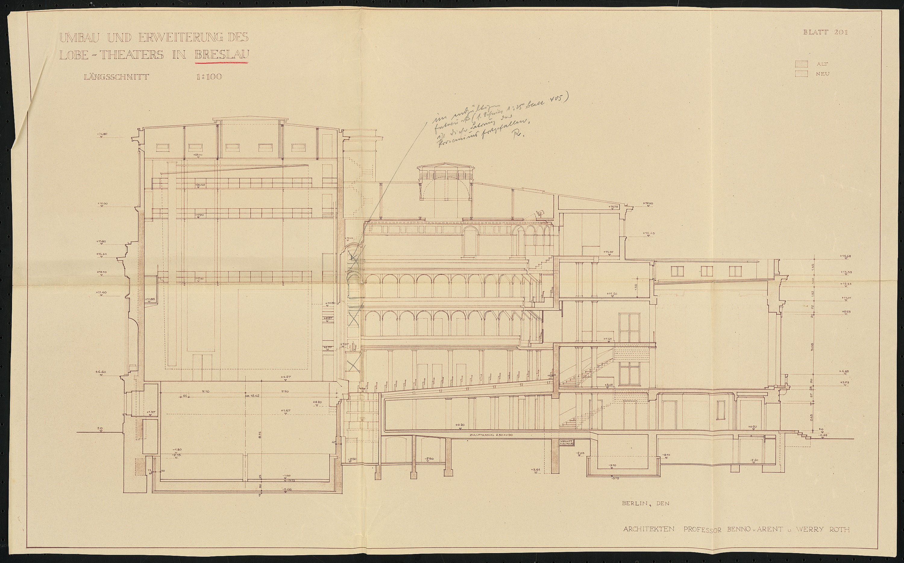 Längsschnitt 1:100 Umbau- und Erweiterungsplan