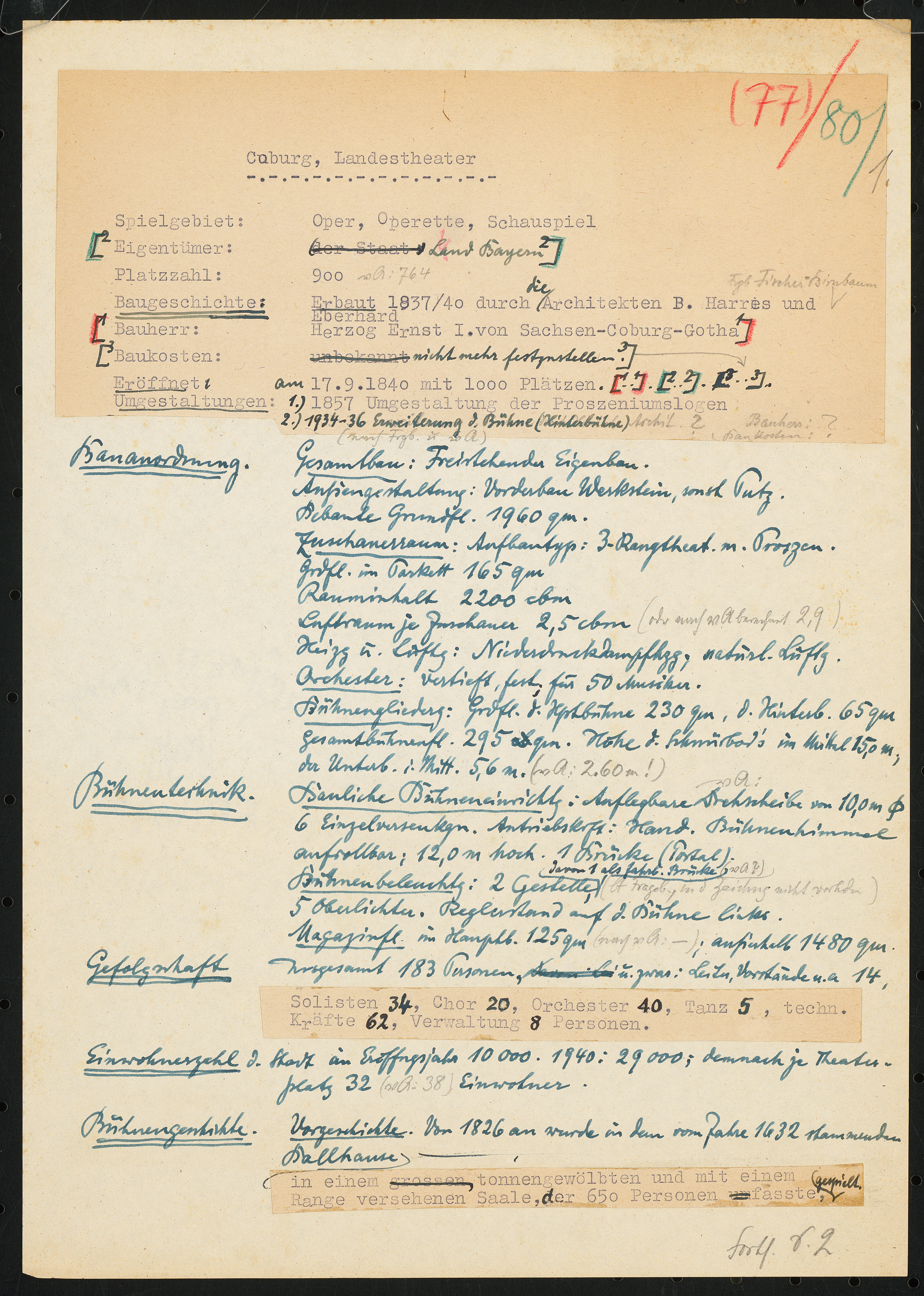 Schriftstück zum Fragebogen für das Handbuch »Das Deutsche Theater«, zwei Seiten