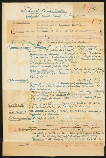 Schriftstück zum Fragebogen für das Handbuch »Das Deutsche Theater«