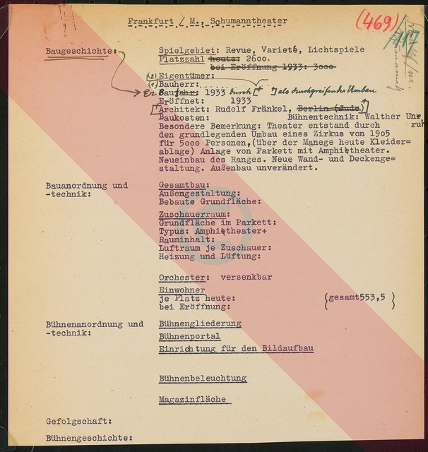 Schriftstück zum Fragebogen für das Handbuch »Das Deutsche Theater«