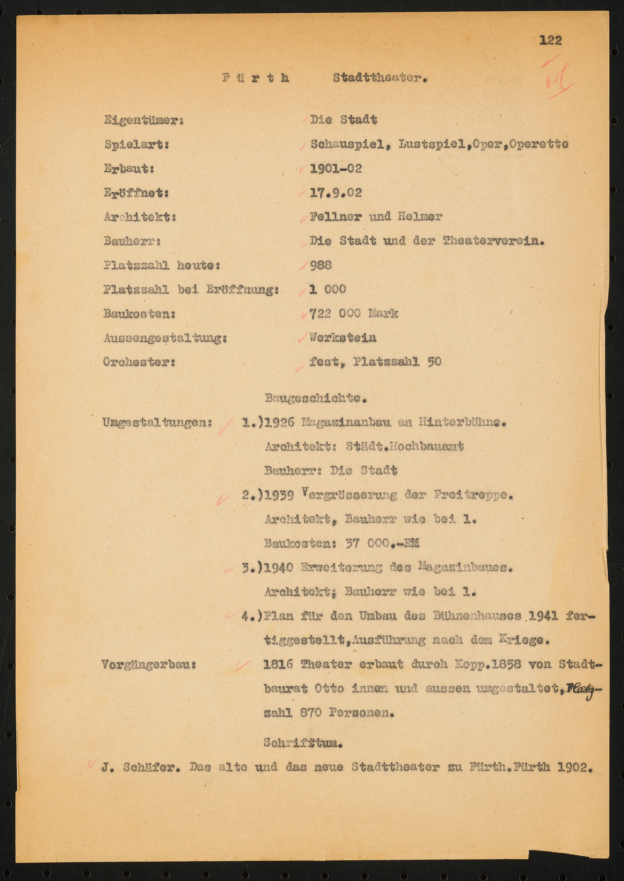 Schriftstück zum Fragebogen für das Handbuch »Das Deutsche Theater«