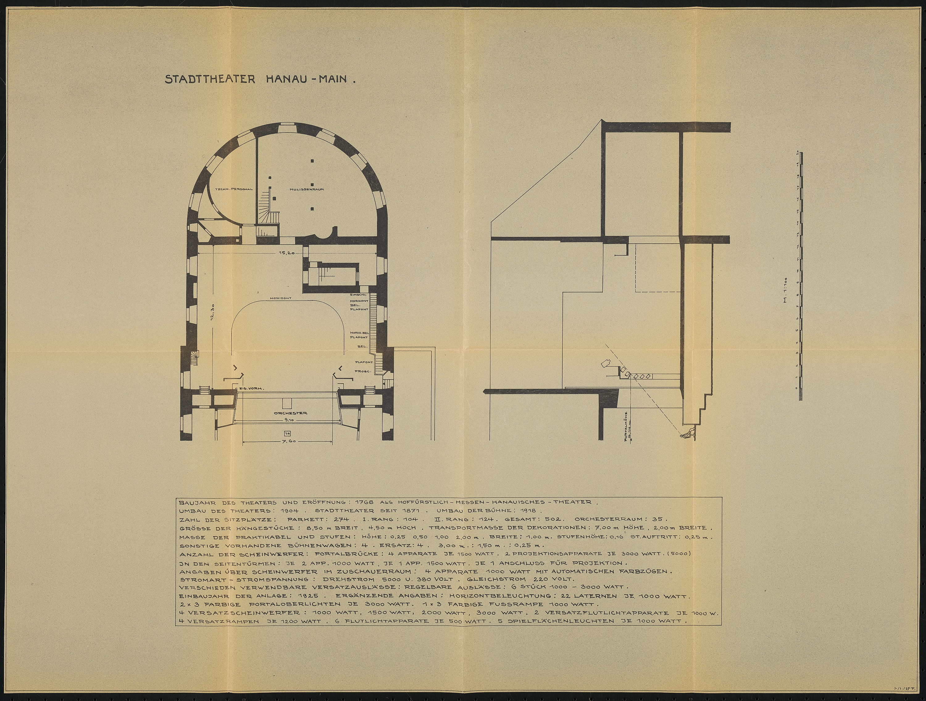 Bühnengrundriss und -schnitt 1:100