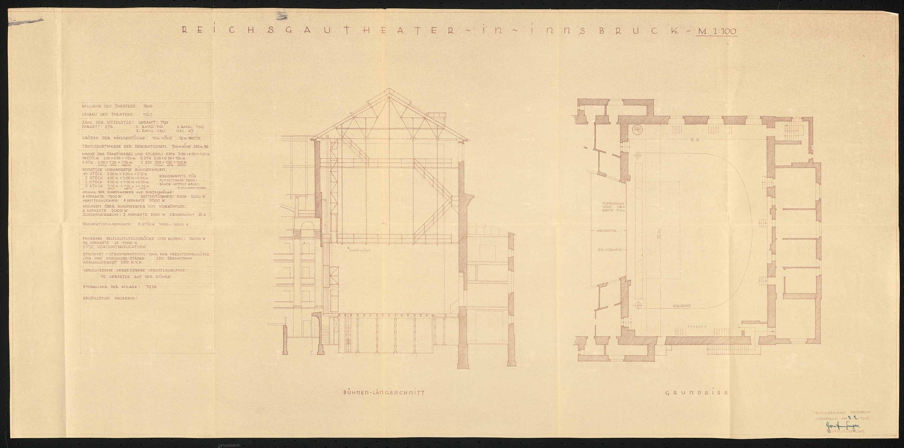 Bühnengrundriss und Bühnenlängsschnitt 1:100