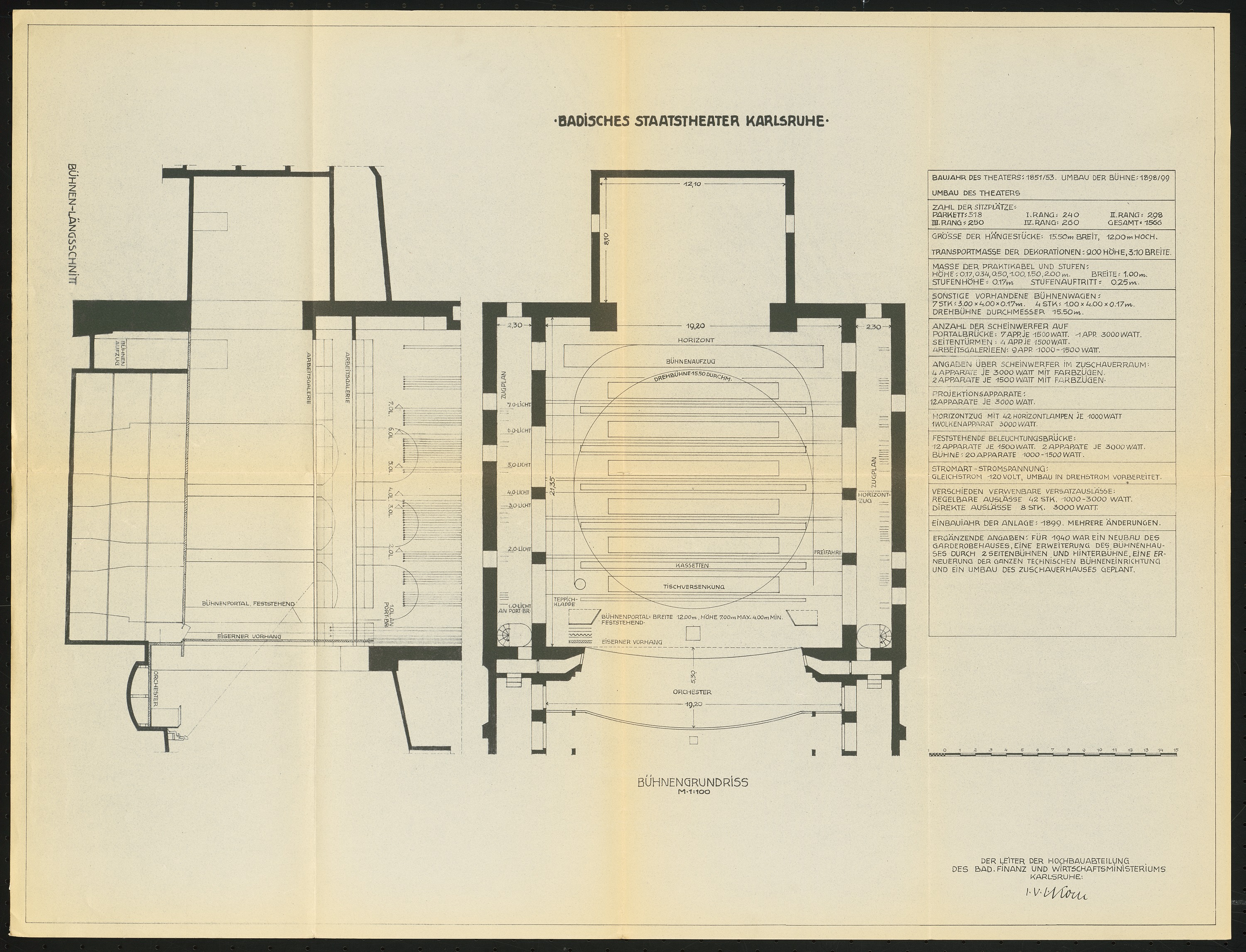 Bühnengrundriss und Bühnenlängsschnitt 1:100