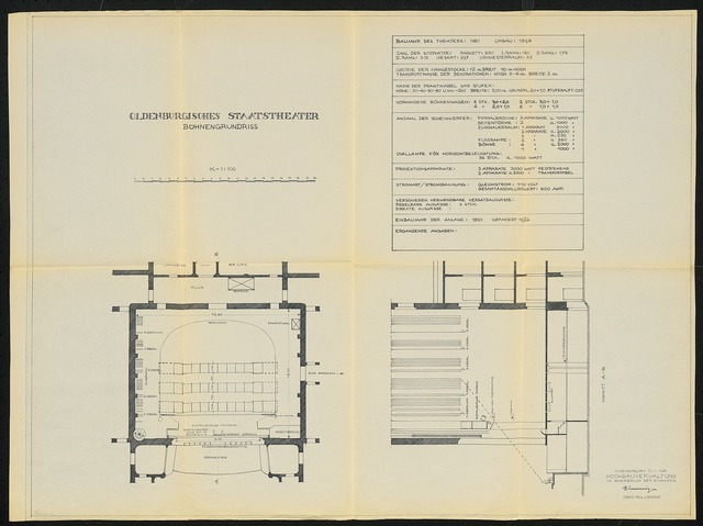 Bühnengrundriss und Bühnenlängsschnitt 1:100
