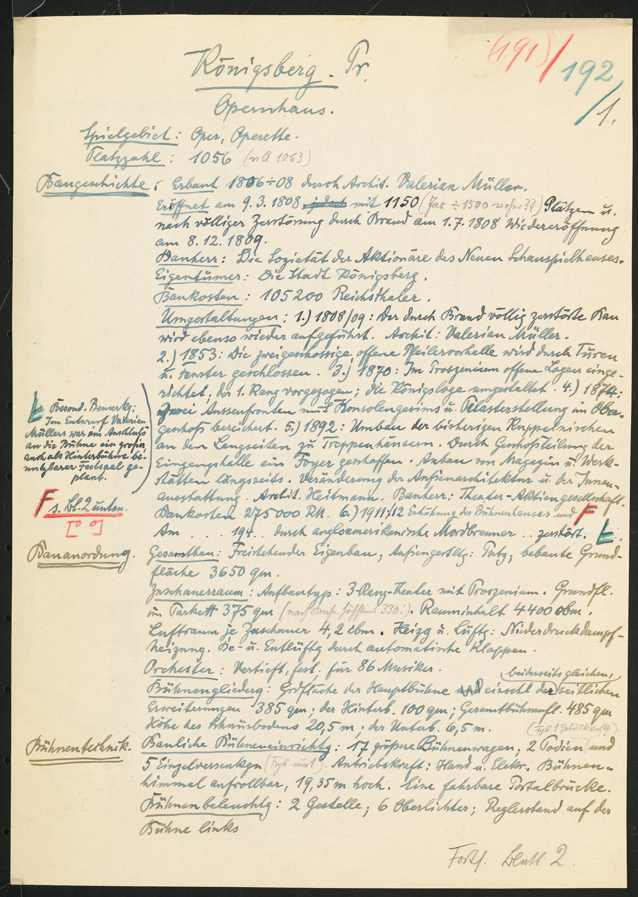 Schriftstück zum Fragebogen für das Handbuch »Das Deutsche Theater«, zwei Seiten