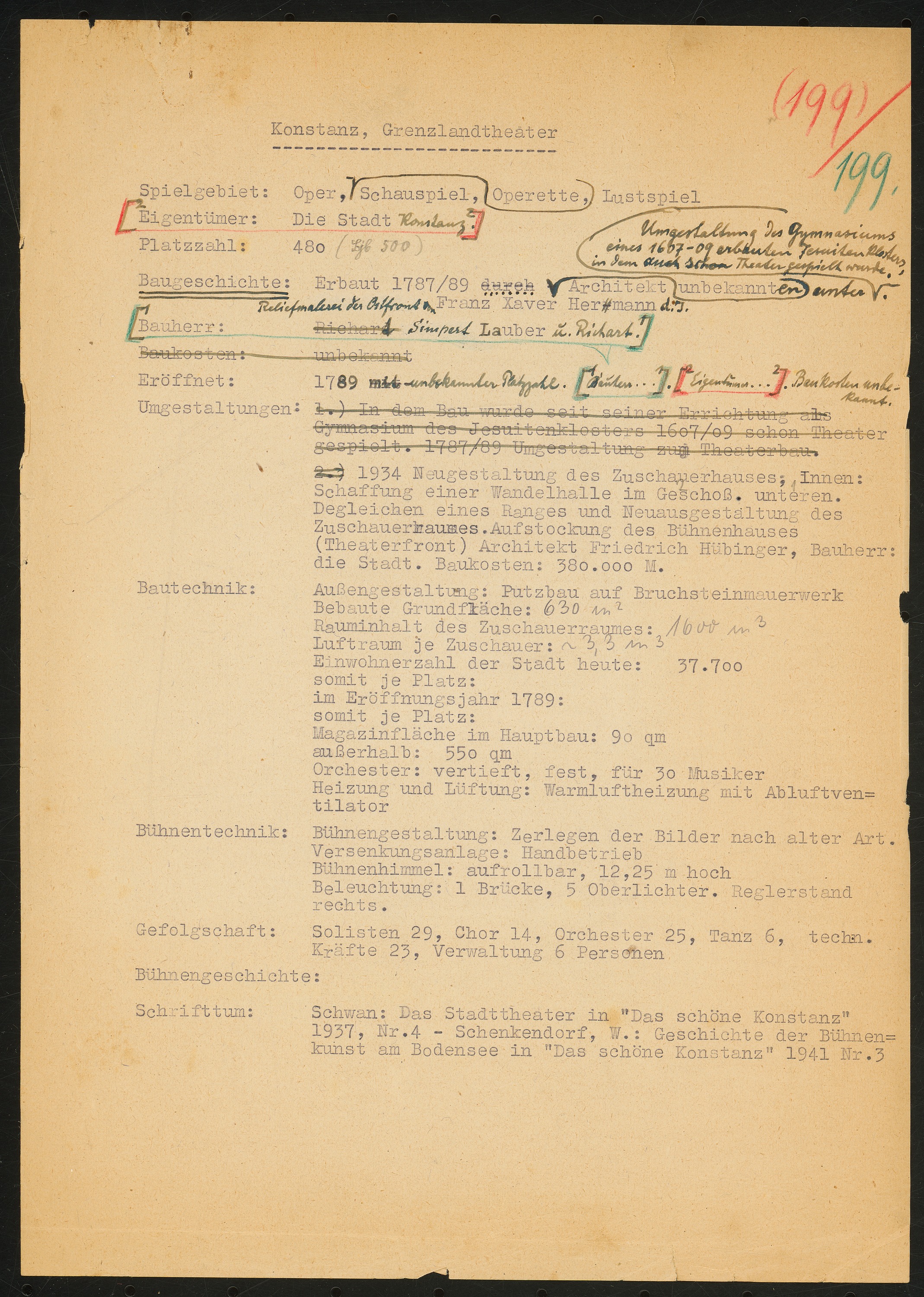 Schriftstück zum Fragebogen für das Handbuch »Das Deutsche Theater«