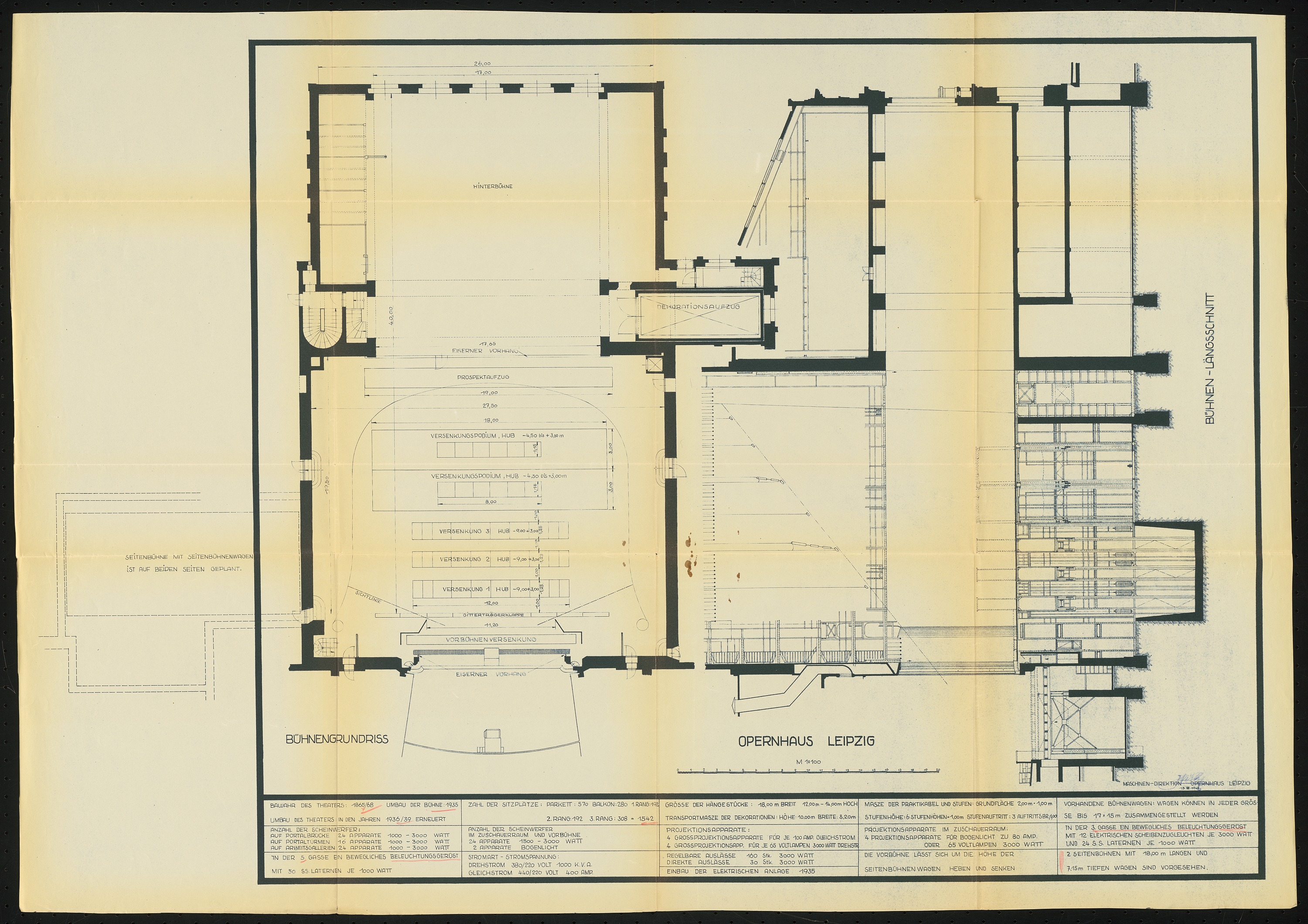 Bühnengrundriss und Bühnenlängsschnitt 1:100
