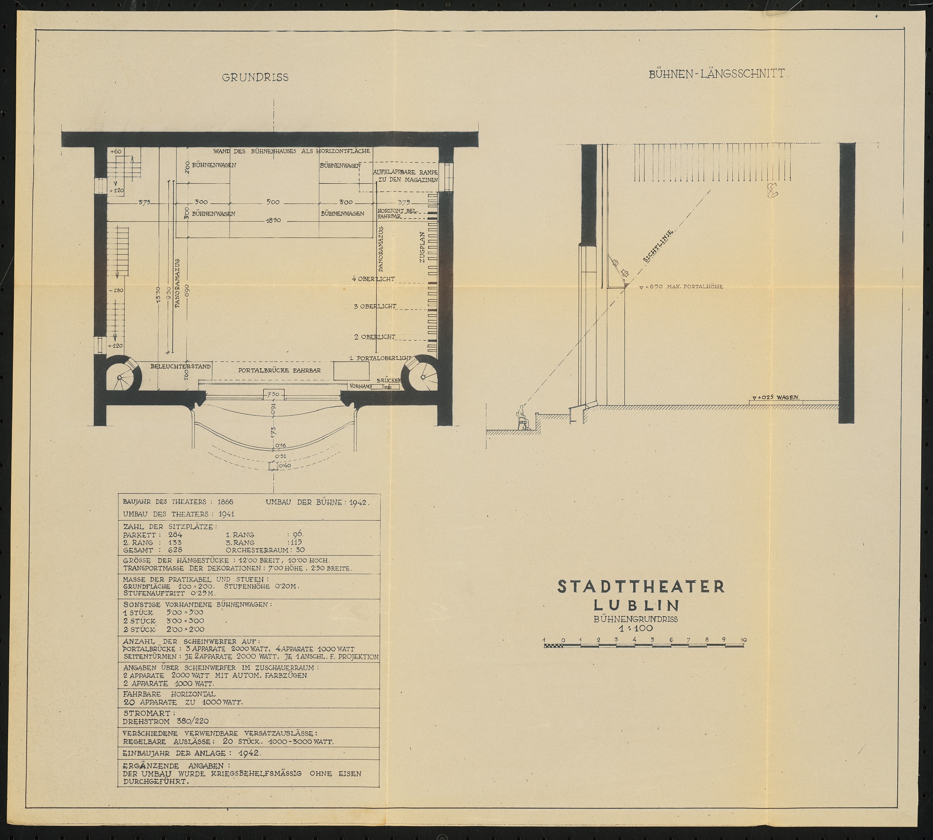Bühnengrundriss und Bühnenlängsschnitt 1:100