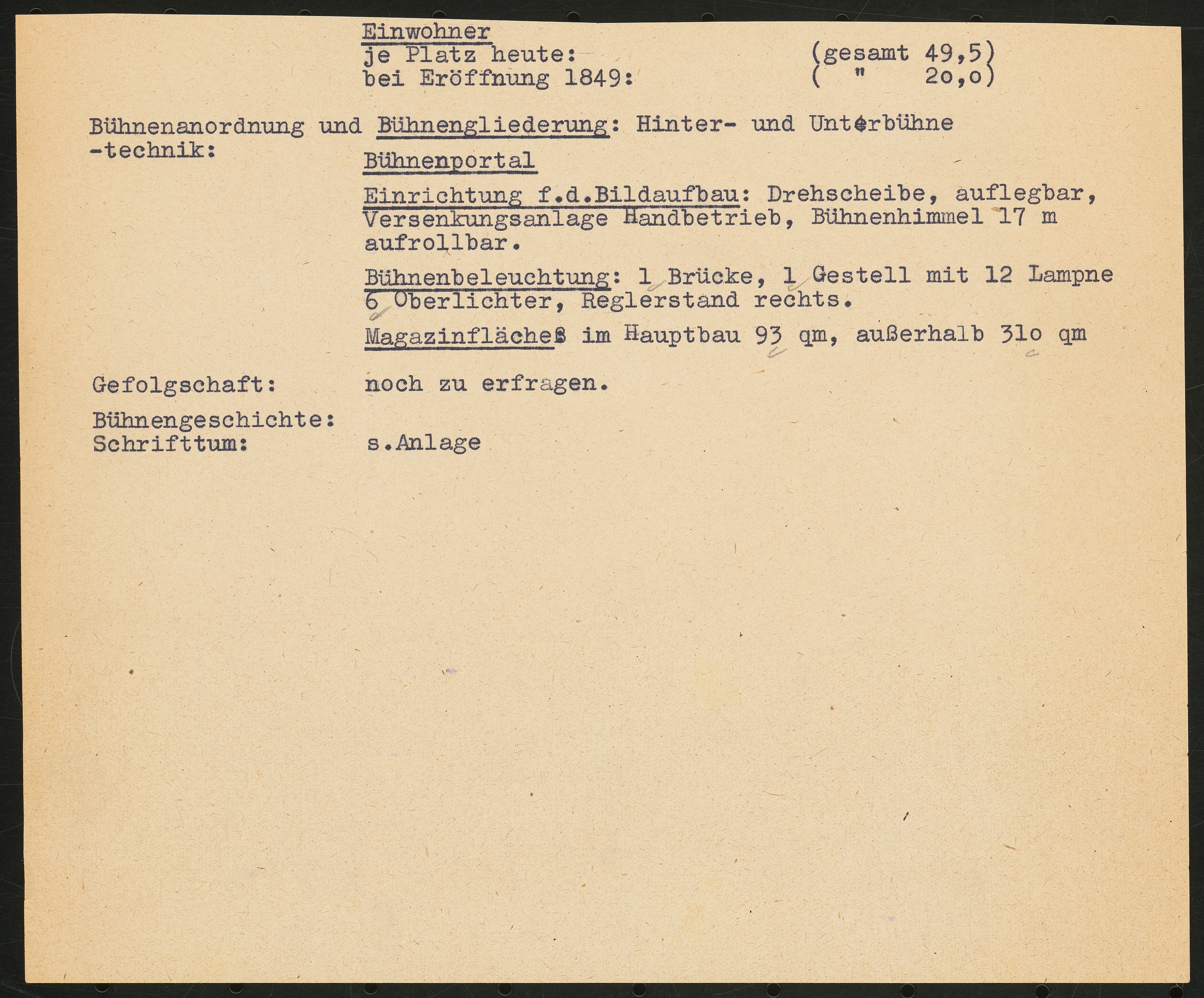 Schriftstück zum Fragebogen für das Handbuch »Das Deutsche Theater«