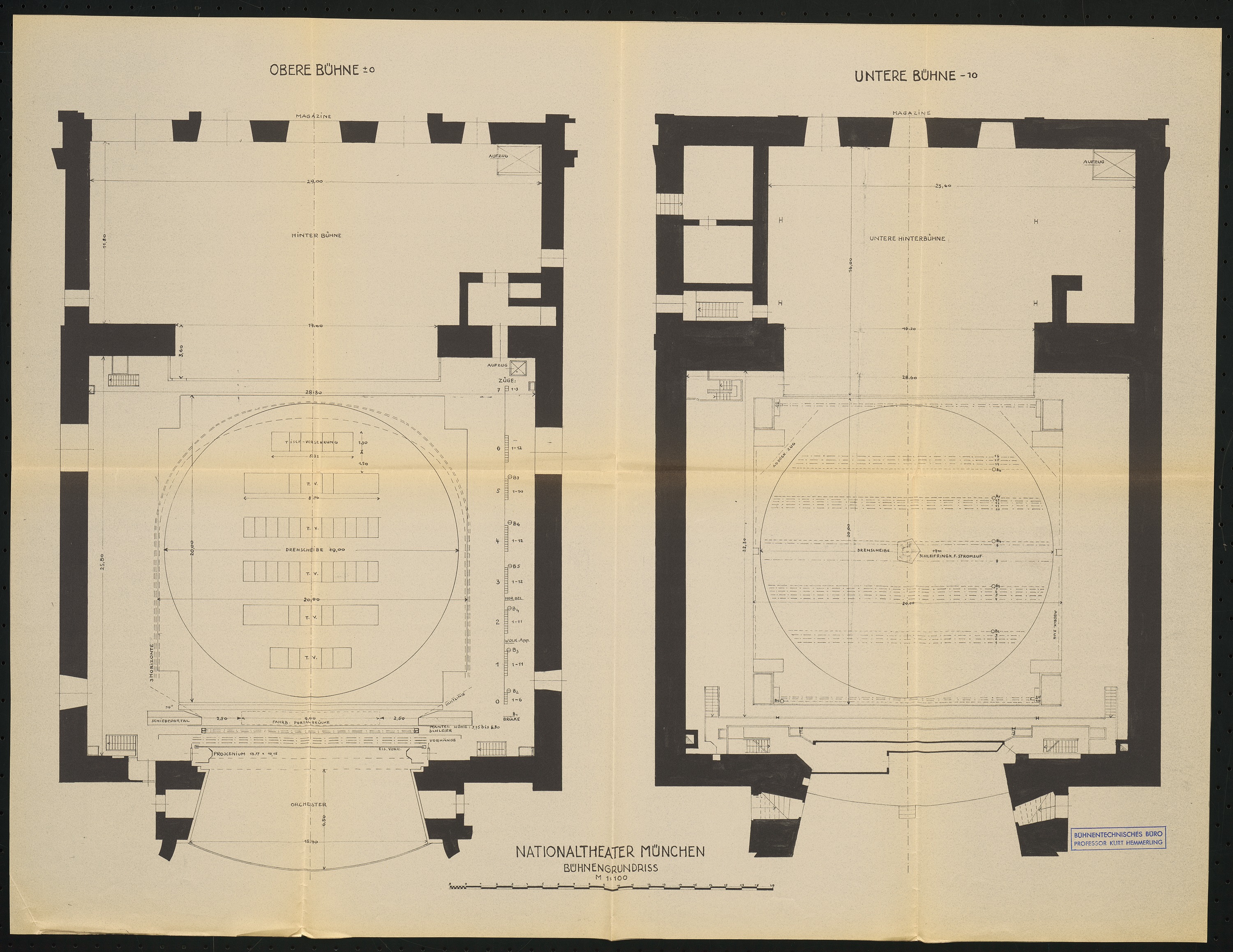 Grundriss der unteren und oberen Bühne 1:100